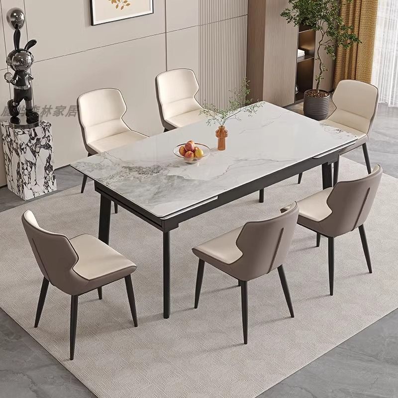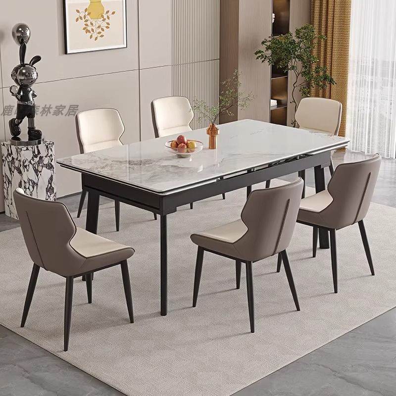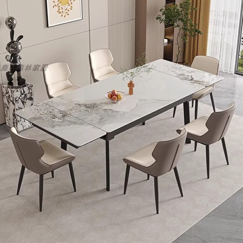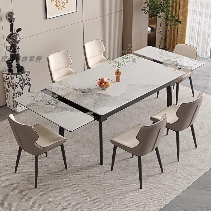 岩板饭桌伸缩折叠小户型长方形现代简约轻奢意式家用组合餐桌椅