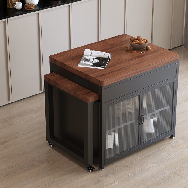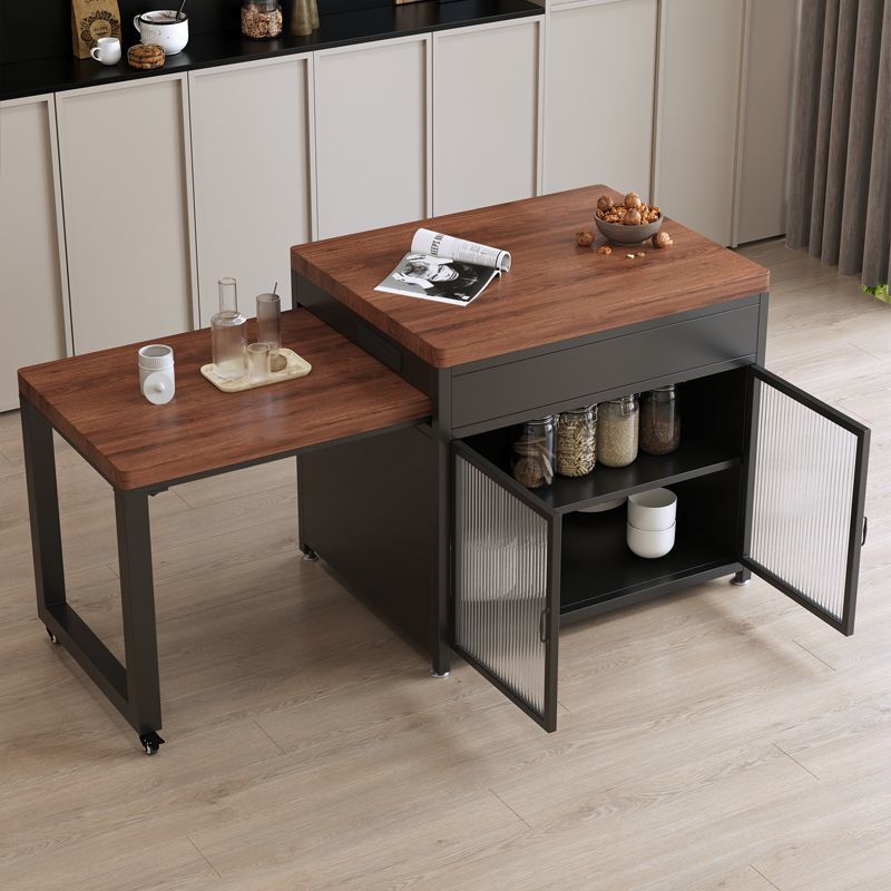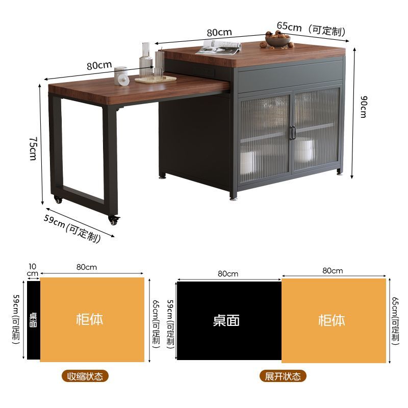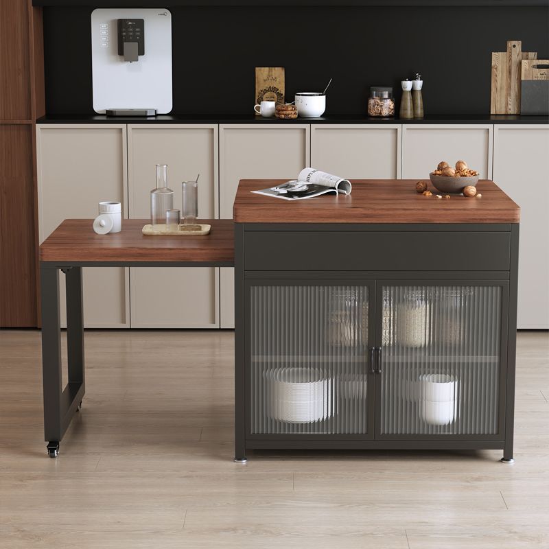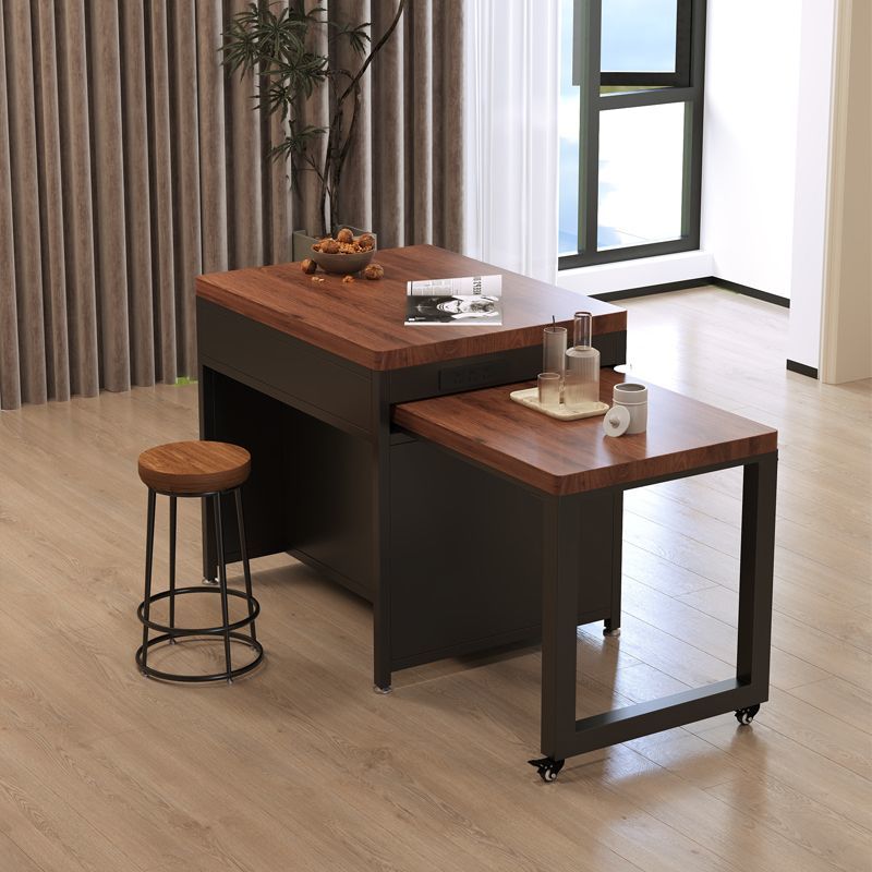 工业风餐厅岛台餐桌一体可伸缩家用厨房吧台铁艺实木小户型中岛台
