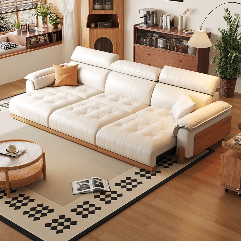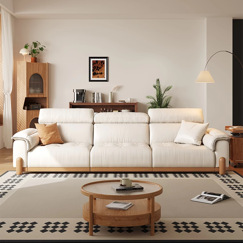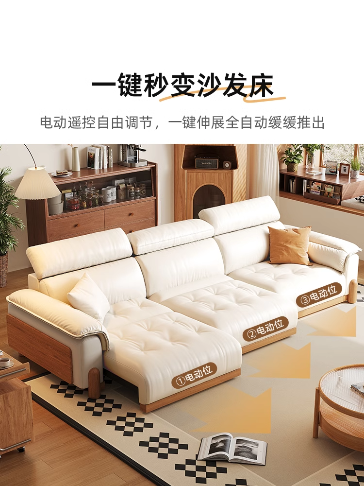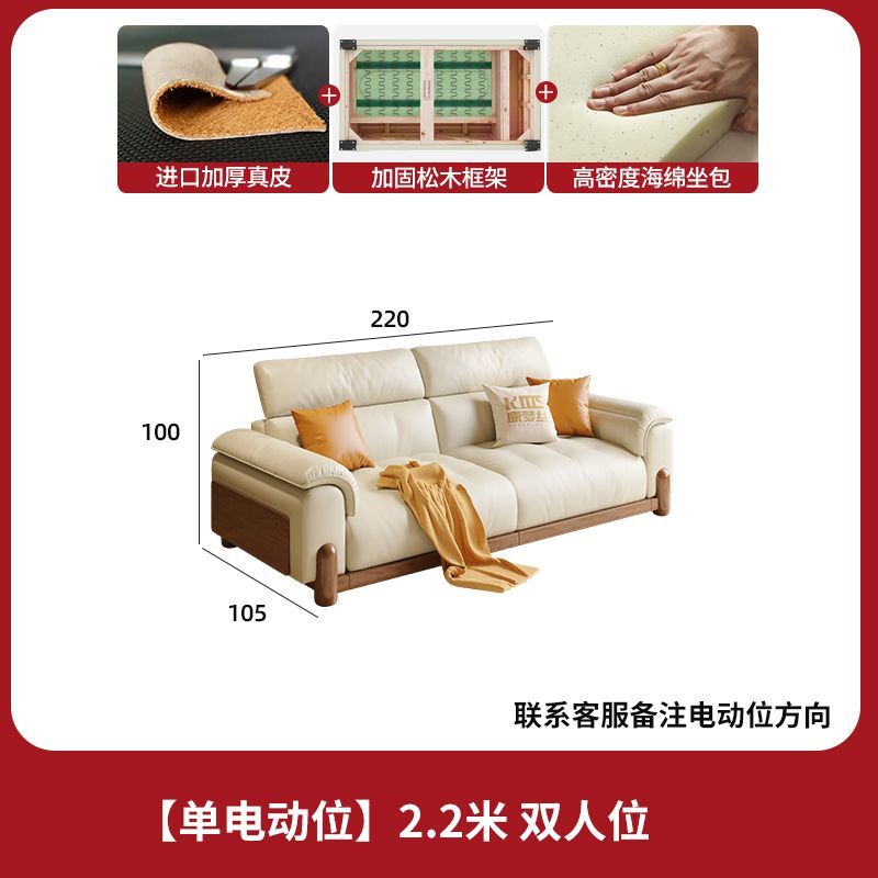 【工厂直销】真皮电动沙发客厅多功能原木风实木沙发小户型沙发