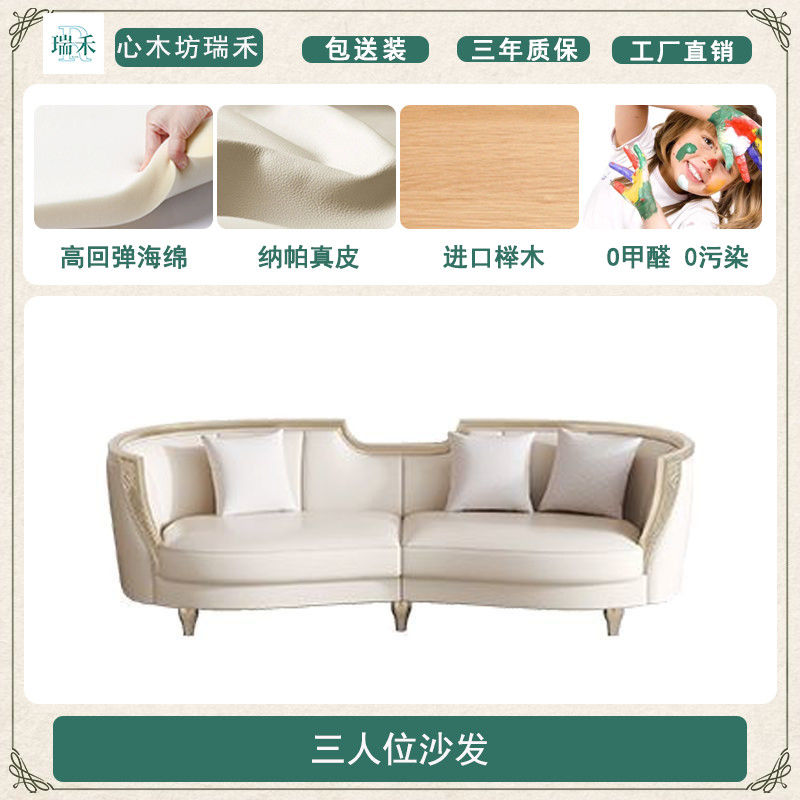 心木坊美式轻奢实木沙发1+2+3欧式客厅真皮小户型法式全屋定制