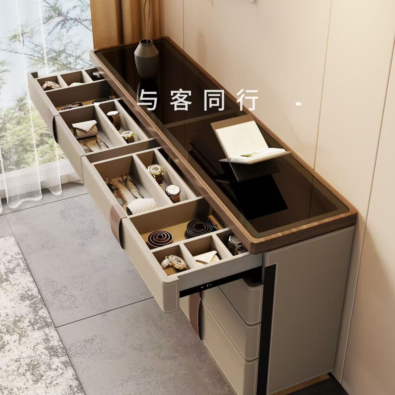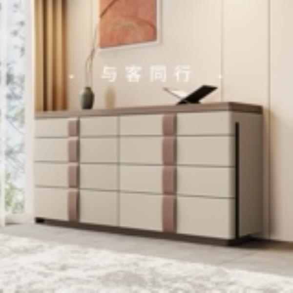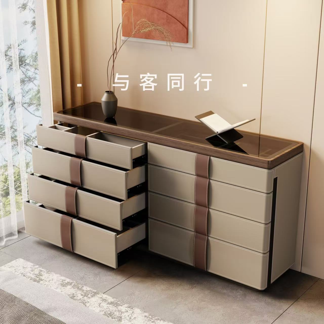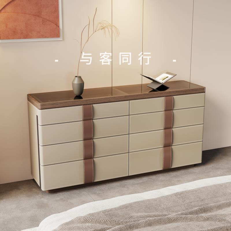 意大利法式收纳柜卧室边柜设计师意式实木马鞍皮斗柜