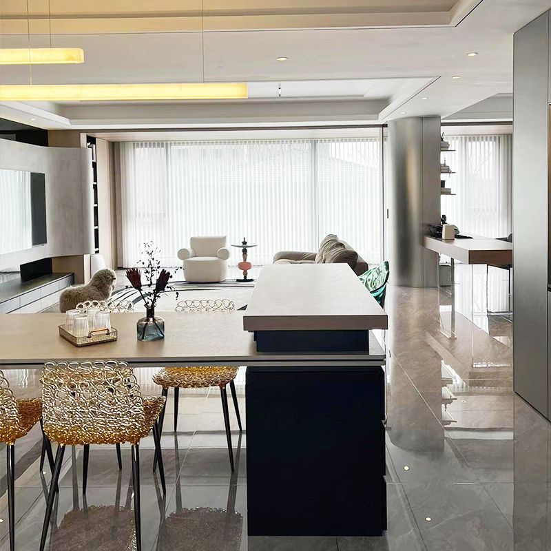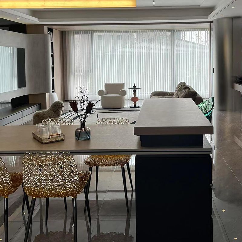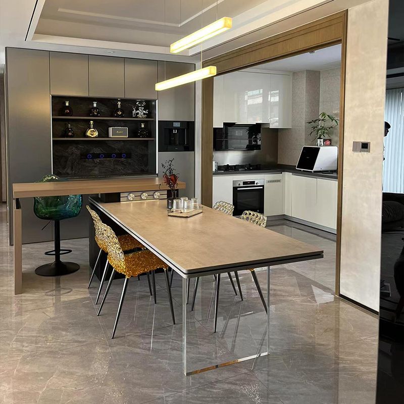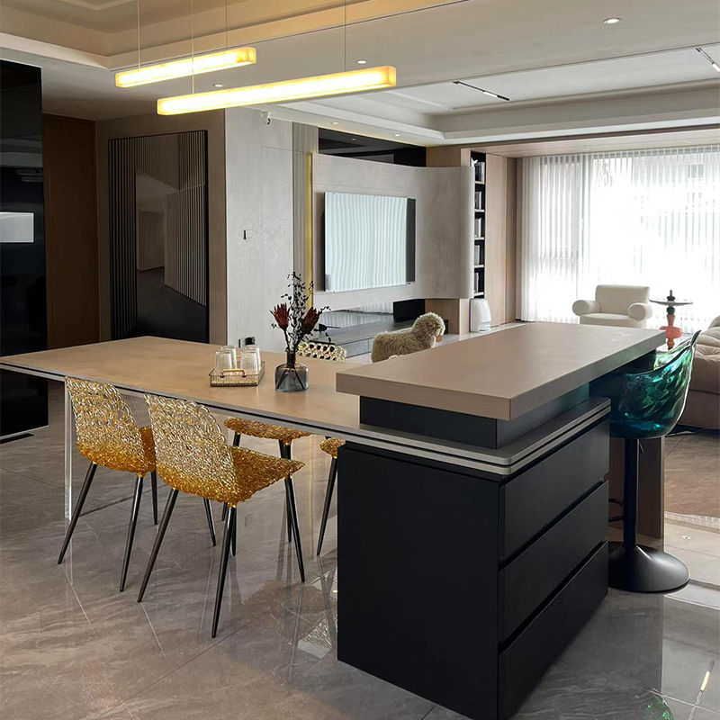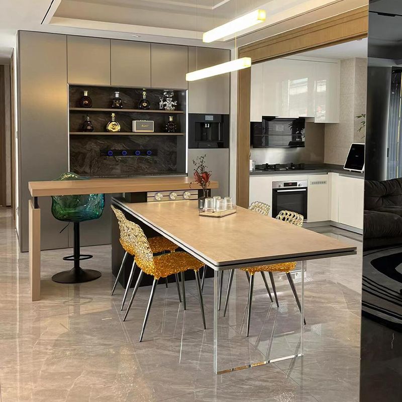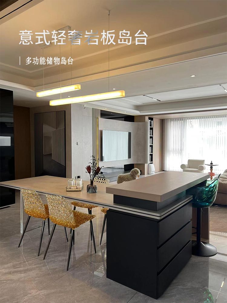 意式可伸缩旋转岛台餐桌一体T型L型家用岩板吧台桌厨房吧台中岛台