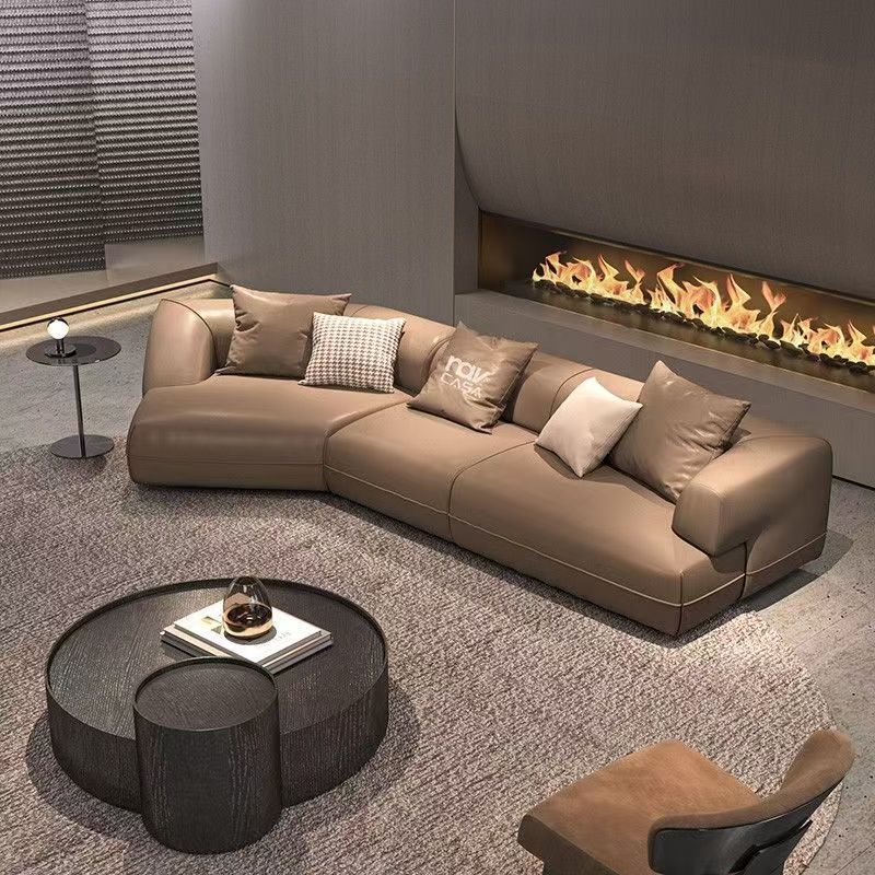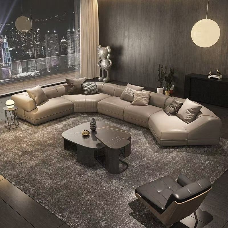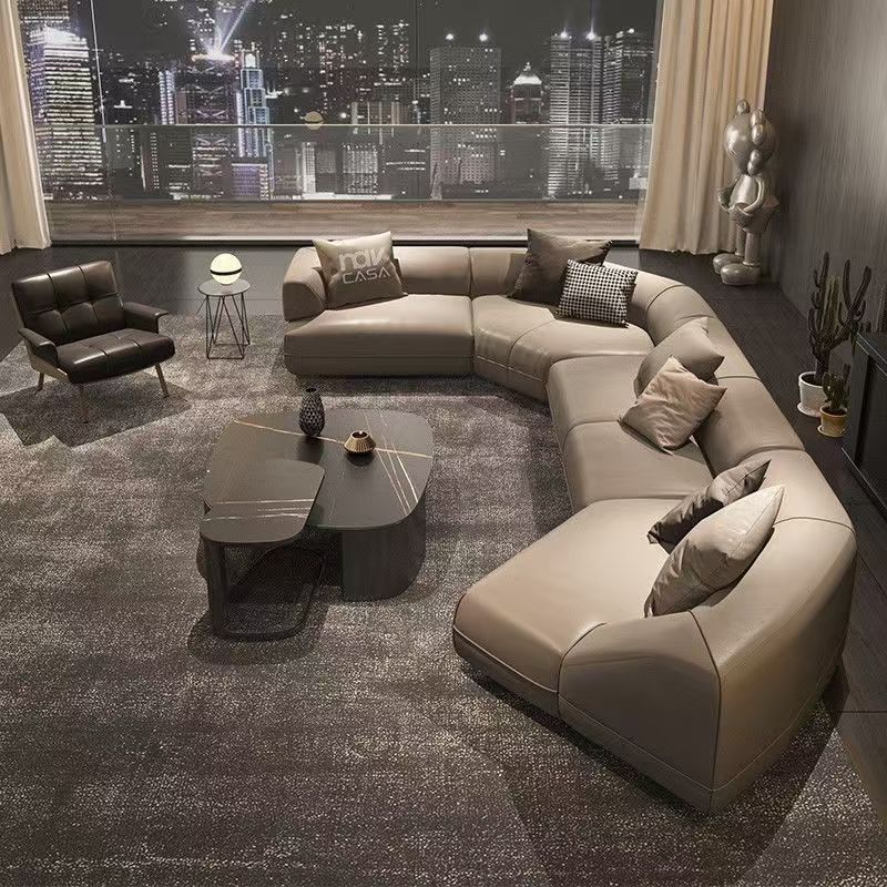意式弧形轻奢沙发现代办公室极简小户型客厅组合全套轻奢直排沙发
