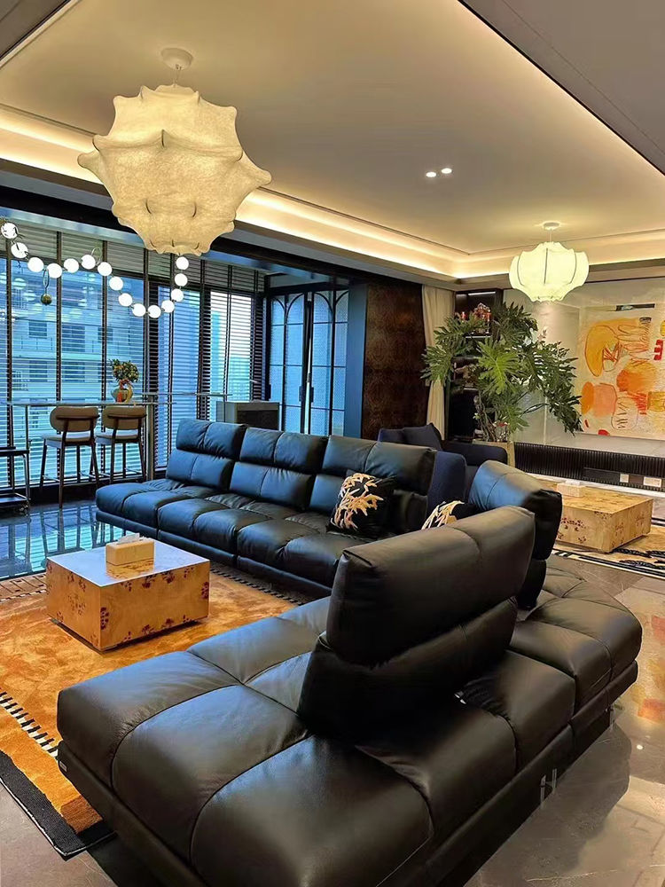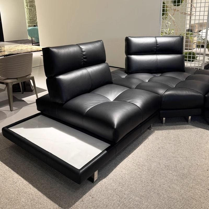 意式极简全真皮黑色罗马沙发客厅可调节靠背转角别墅模块组合沙发