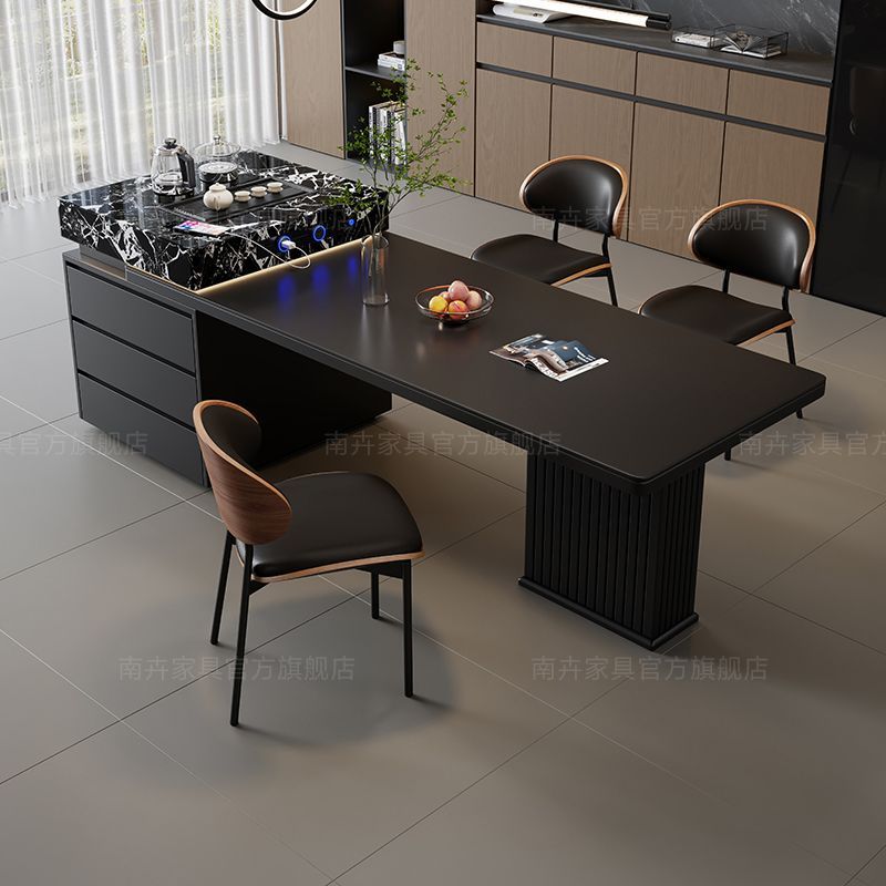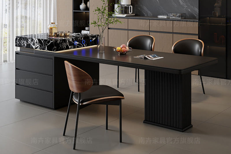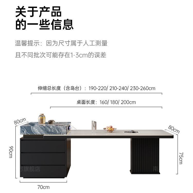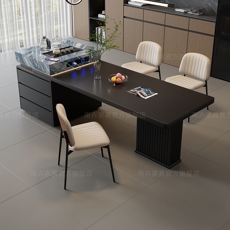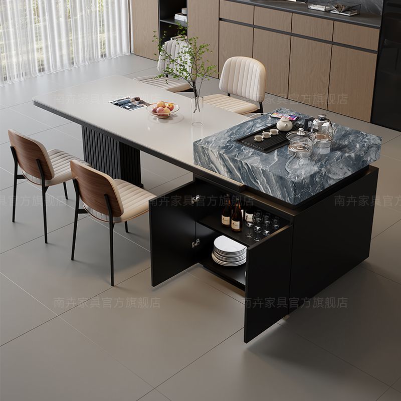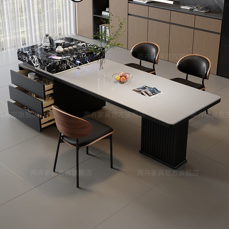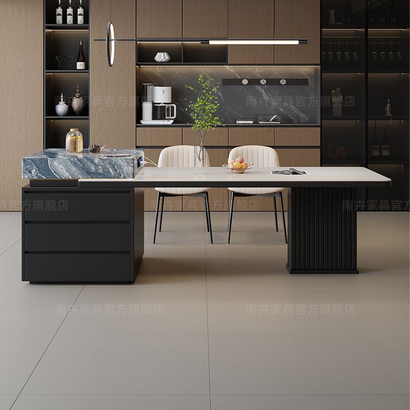 意式极简岩板岛台餐桌一体家用轻奢简约多功能高端可伸缩大小户型
