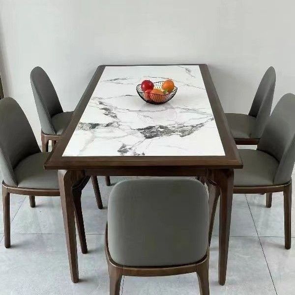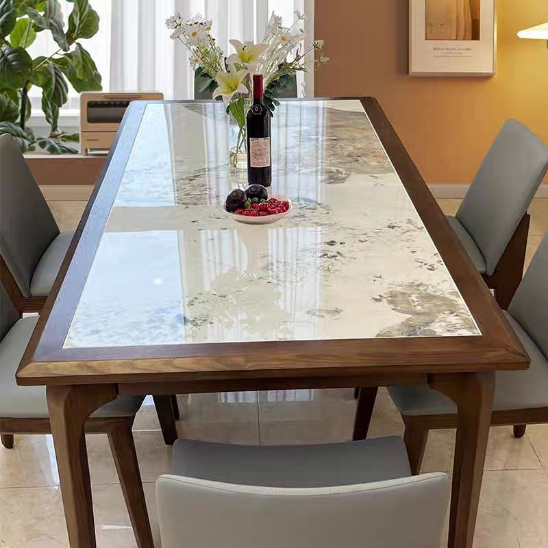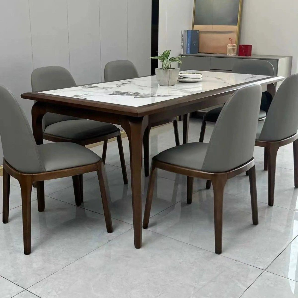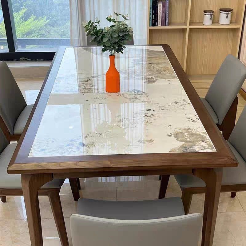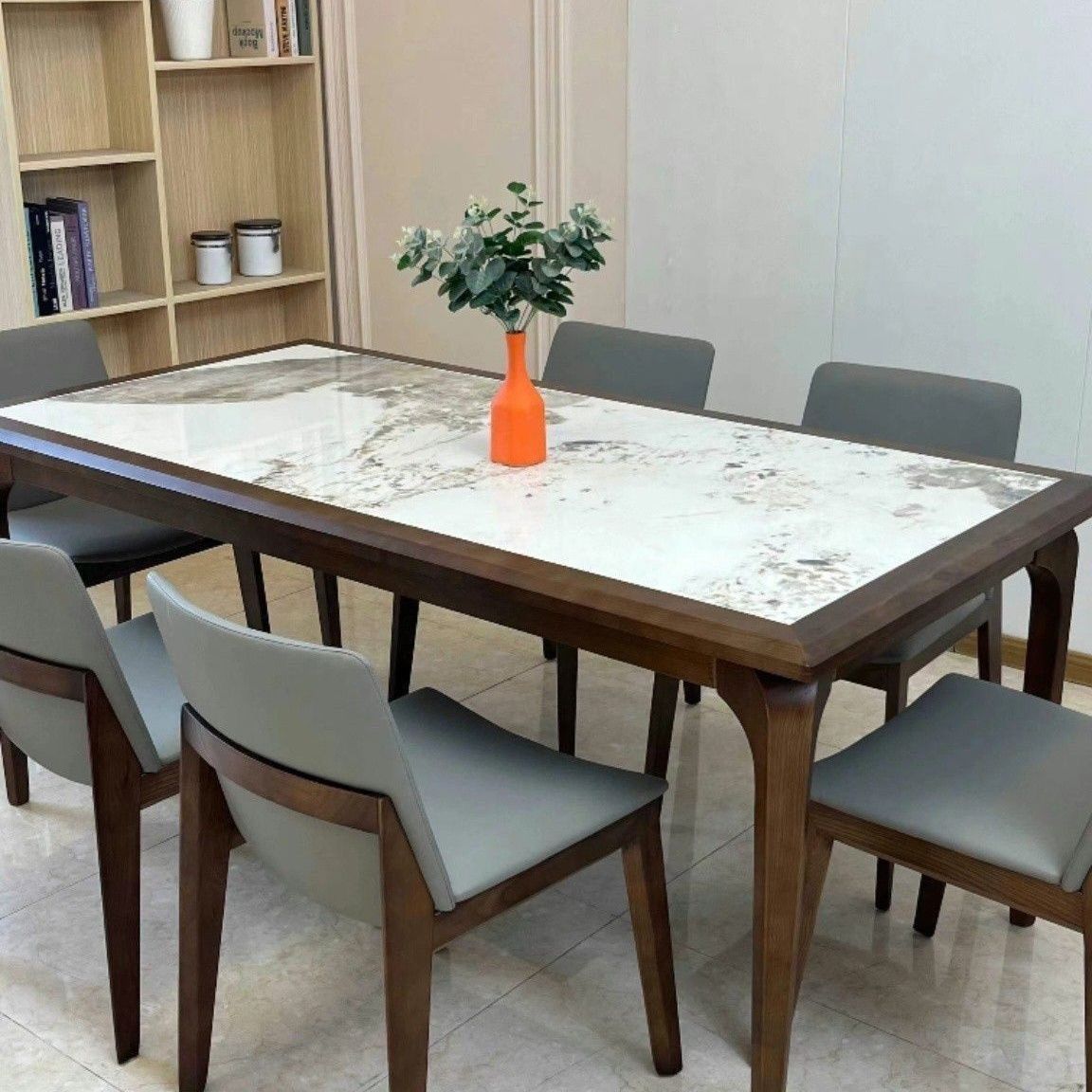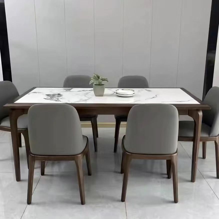 实木内嵌岩板餐桌椅组合北欧简约现代小户型胡桃长方形家用