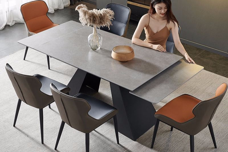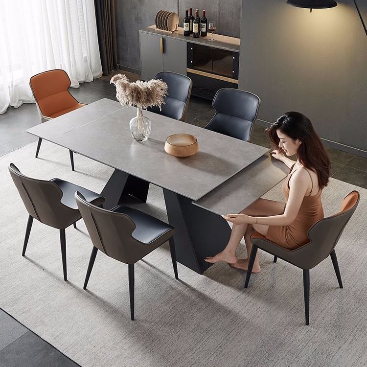 意式极简长方形岩板餐桌可伸缩折叠现代轻奢家用中小户型功能餐桌