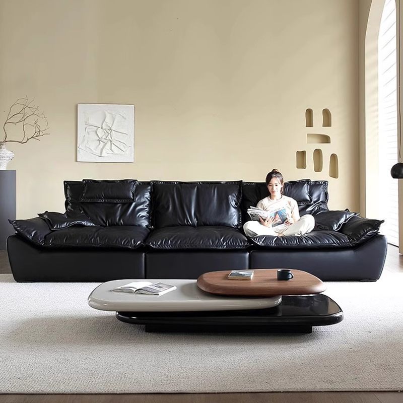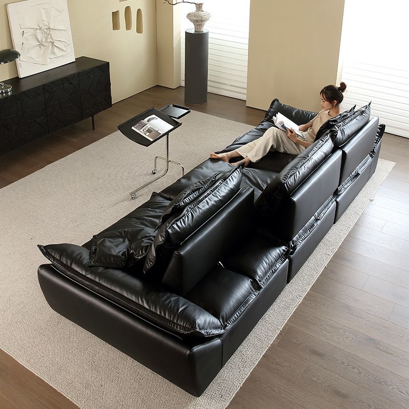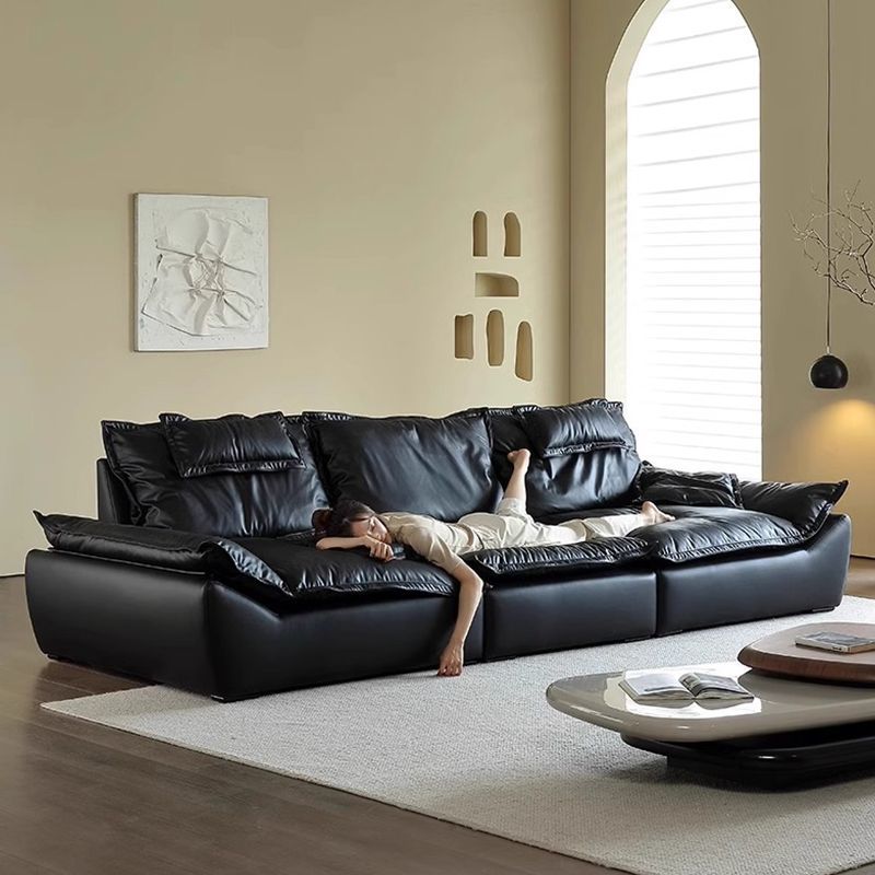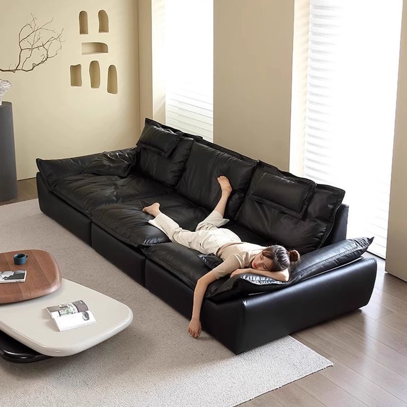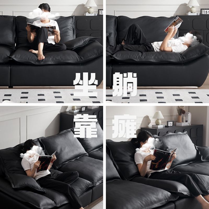 意式真皮沙发客厅现代简约宽坐深轻奢直排帆船靠背可调节皮艺沙发