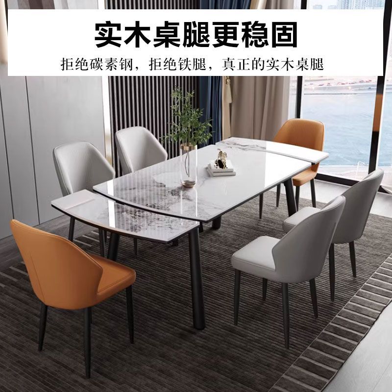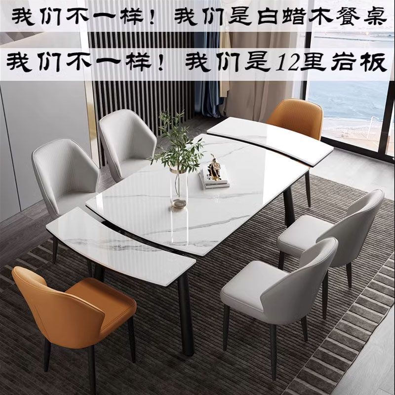 意式轻奢岩板餐桌家用小户型餐桌椅组合可伸缩推拉客厅实木饭桌子