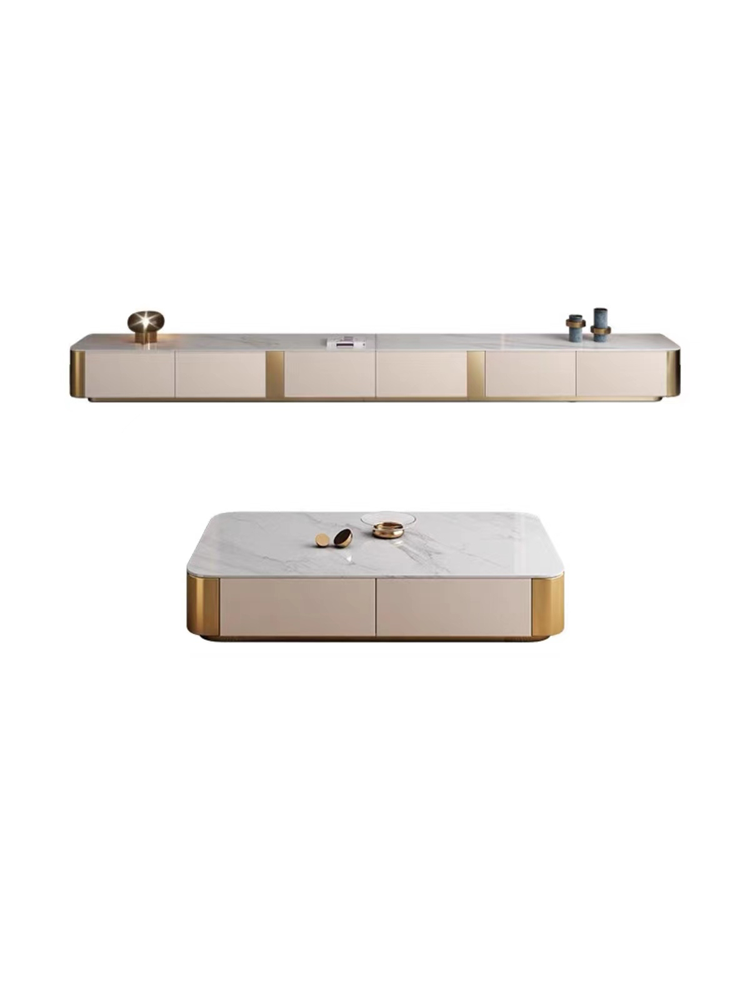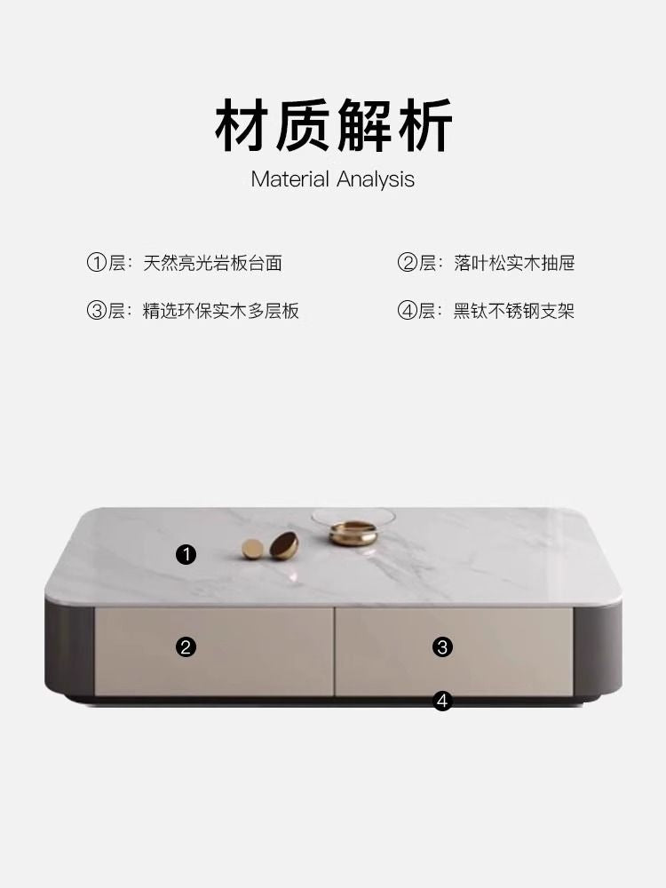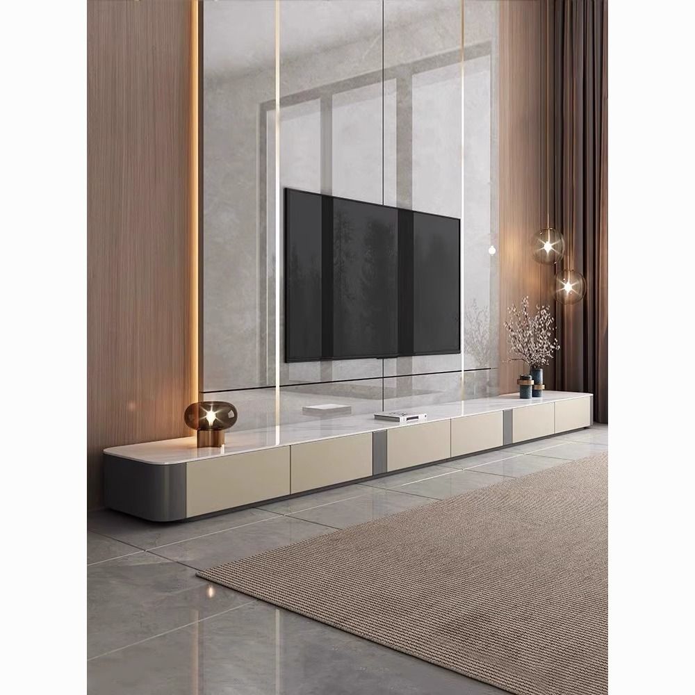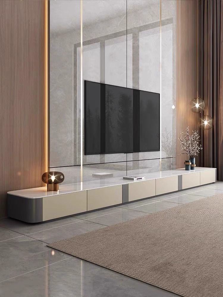 意式轻奢超长落地岩板实木电视柜茶几组合客厅现代简约小户型高端
