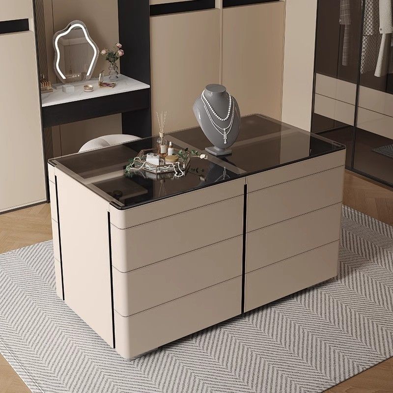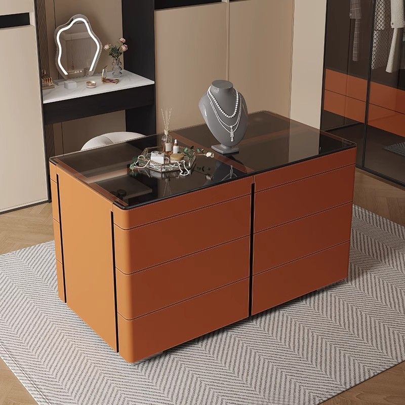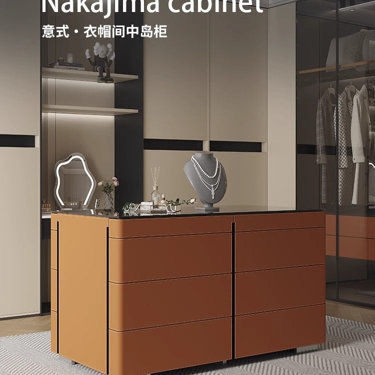 意式马鞍皮衣帽间中岛台卧室首饰展示柜现代轻奢一体落地储物柜子