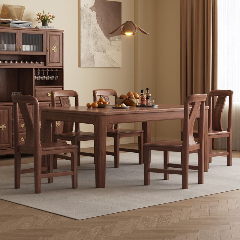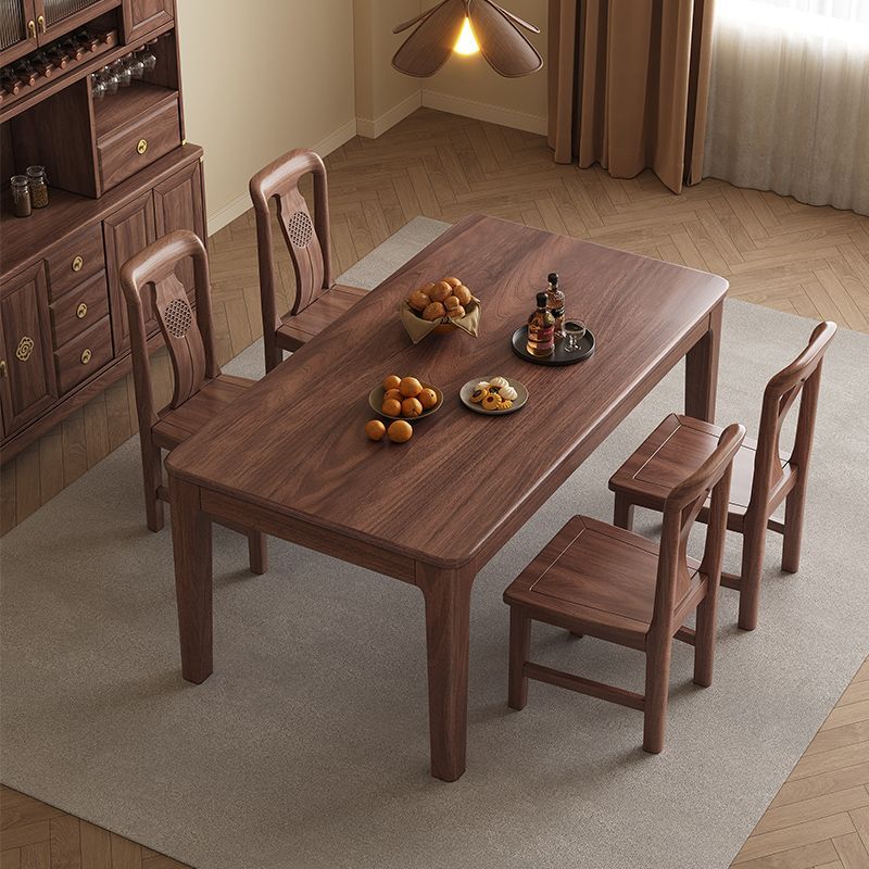 新中式实木餐桌椅组合黑胡桃木长方形饭桌餐厅家具方桌桌子吃饭桌
