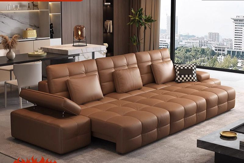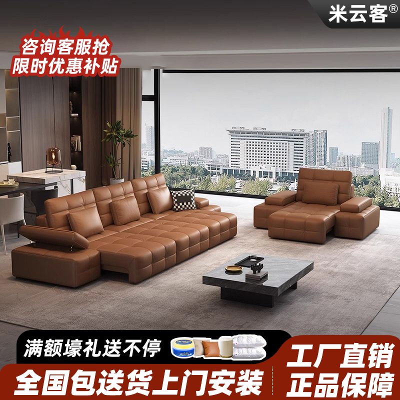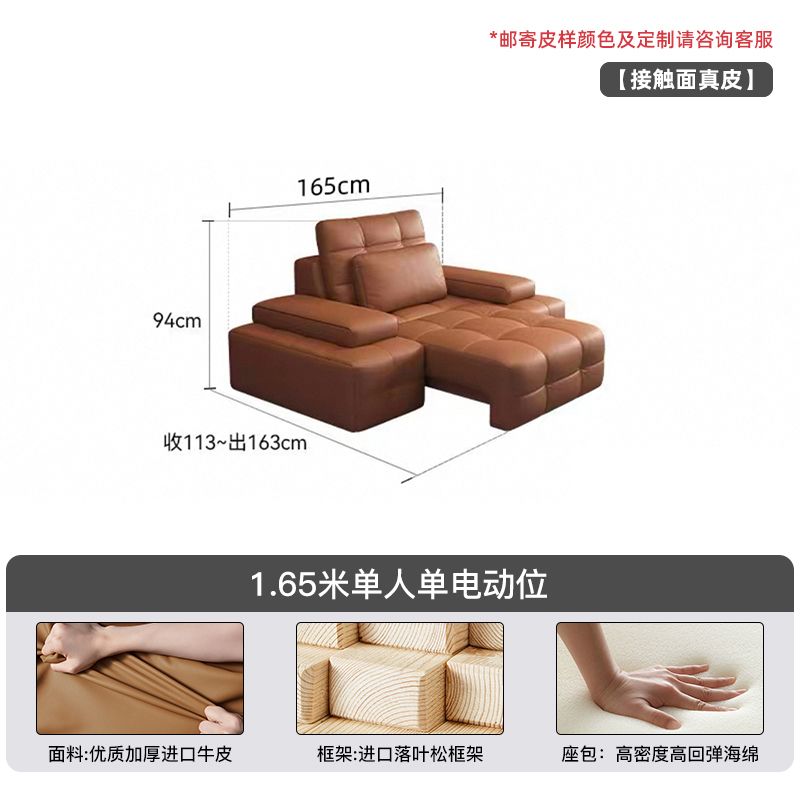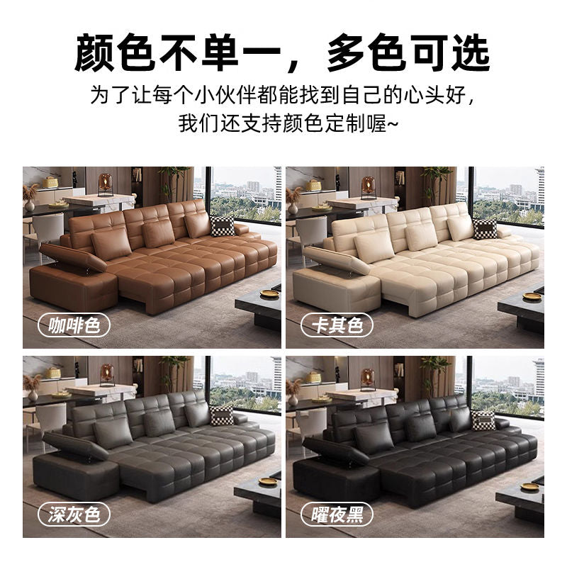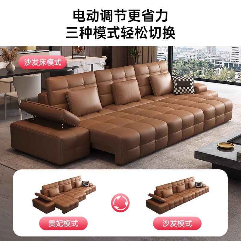 新款劳伦斯意式极简电动功能真皮沙发床两用客厅直排小户型零靠墙