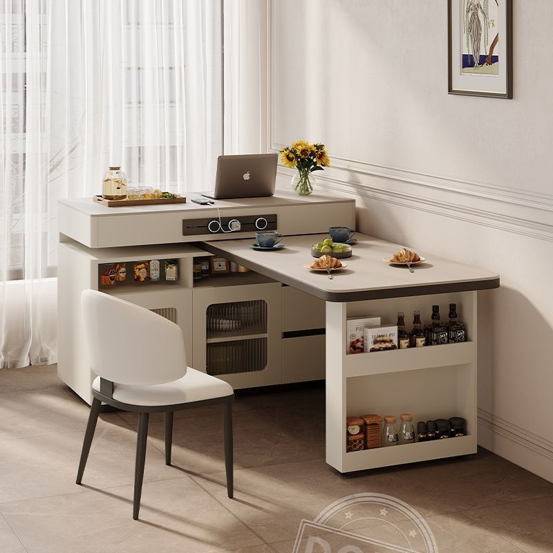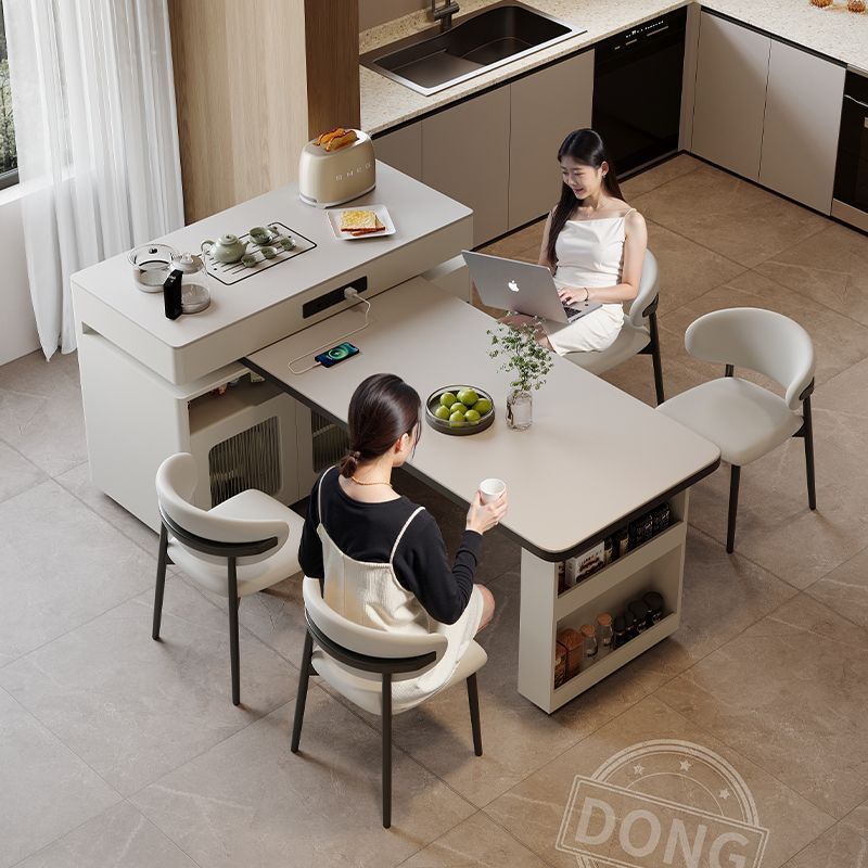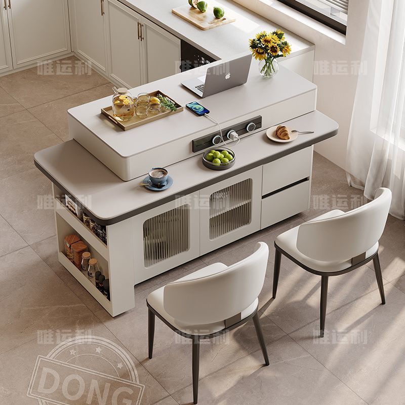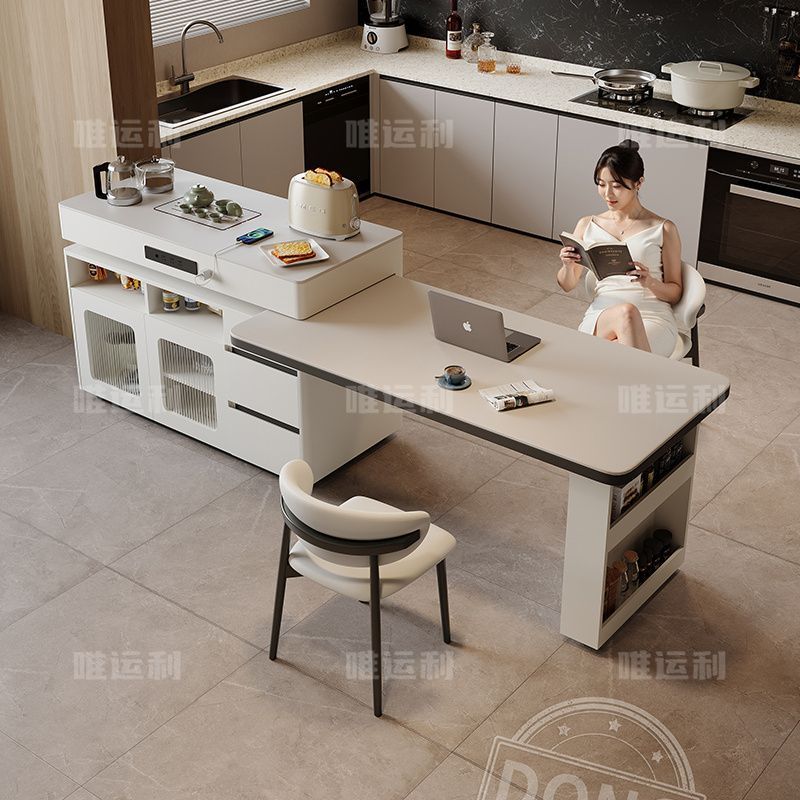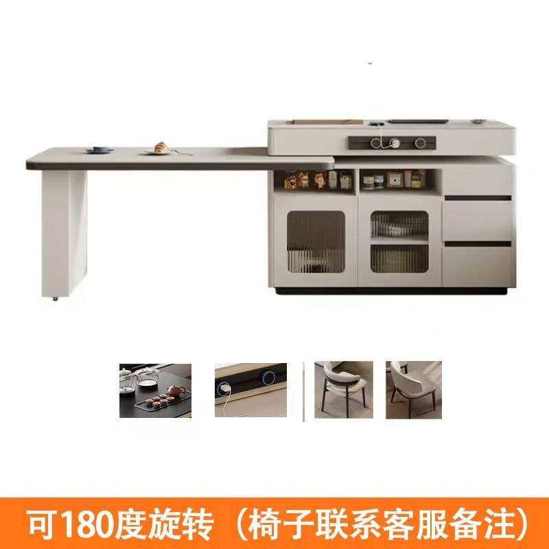 新款岩板岛台餐桌一体可旋转伸缩家用小户型多功能中岛吧台泡茶桌