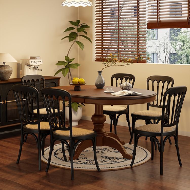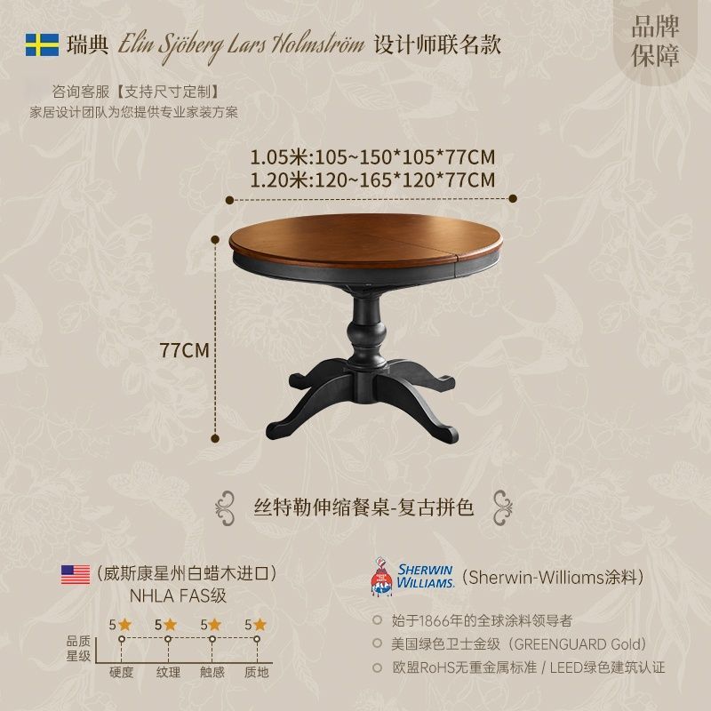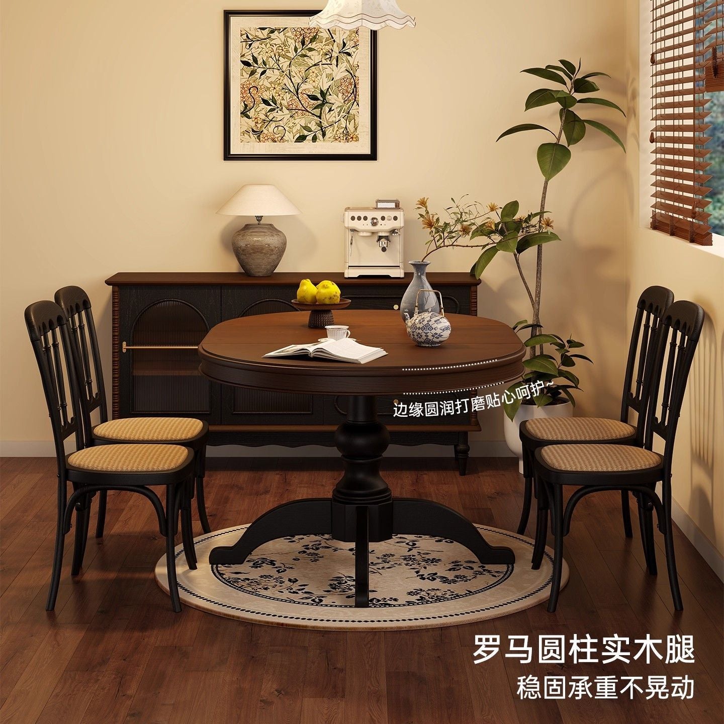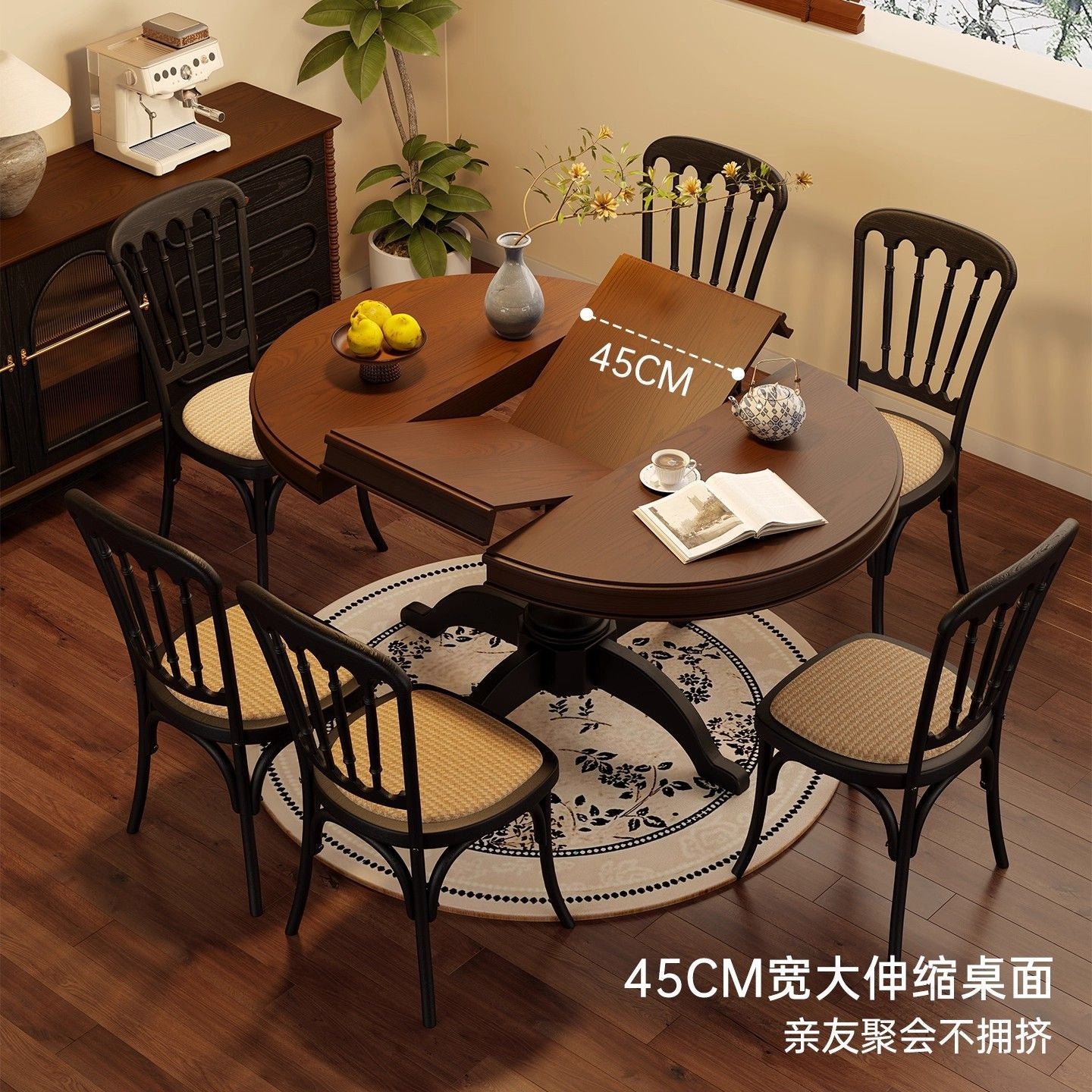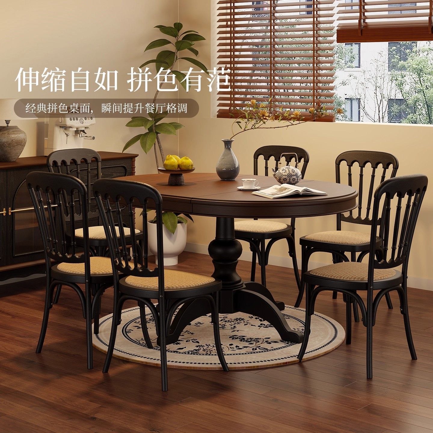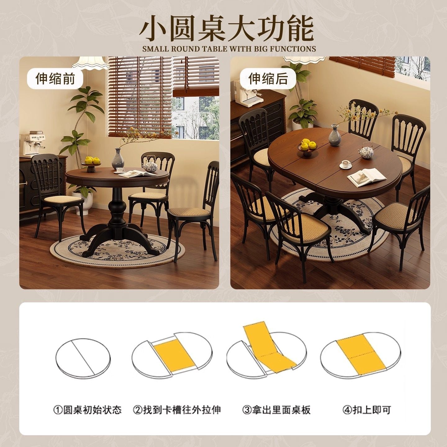 新款法式古风复古实木伸缩餐桌小户型家用全实木可变伸缩圆桌