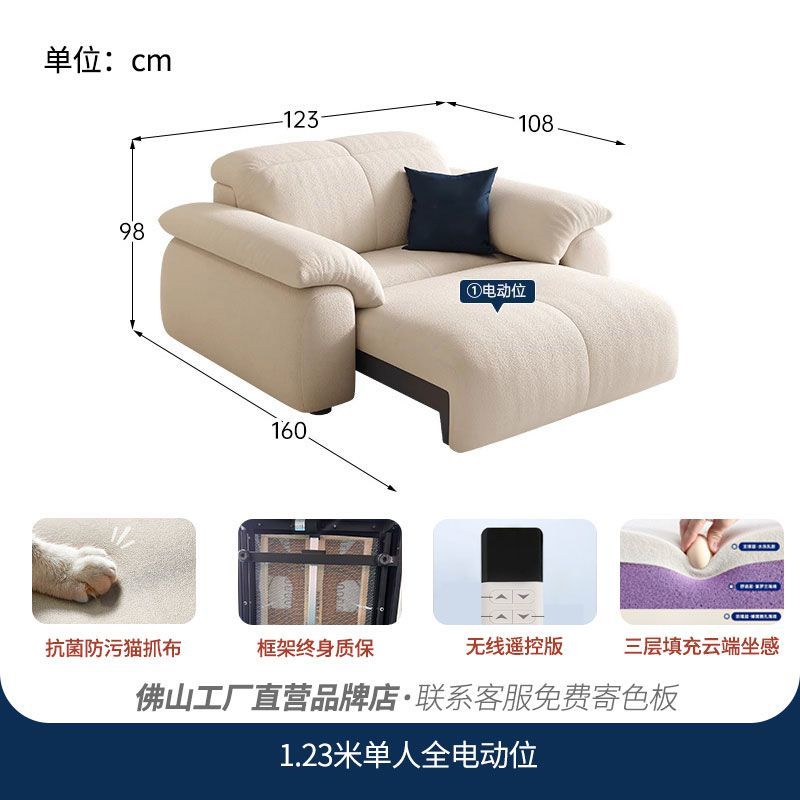 智能语音沙发电动折叠零靠墙客厅太空头等舱伸缩功能猫抓布沙发床