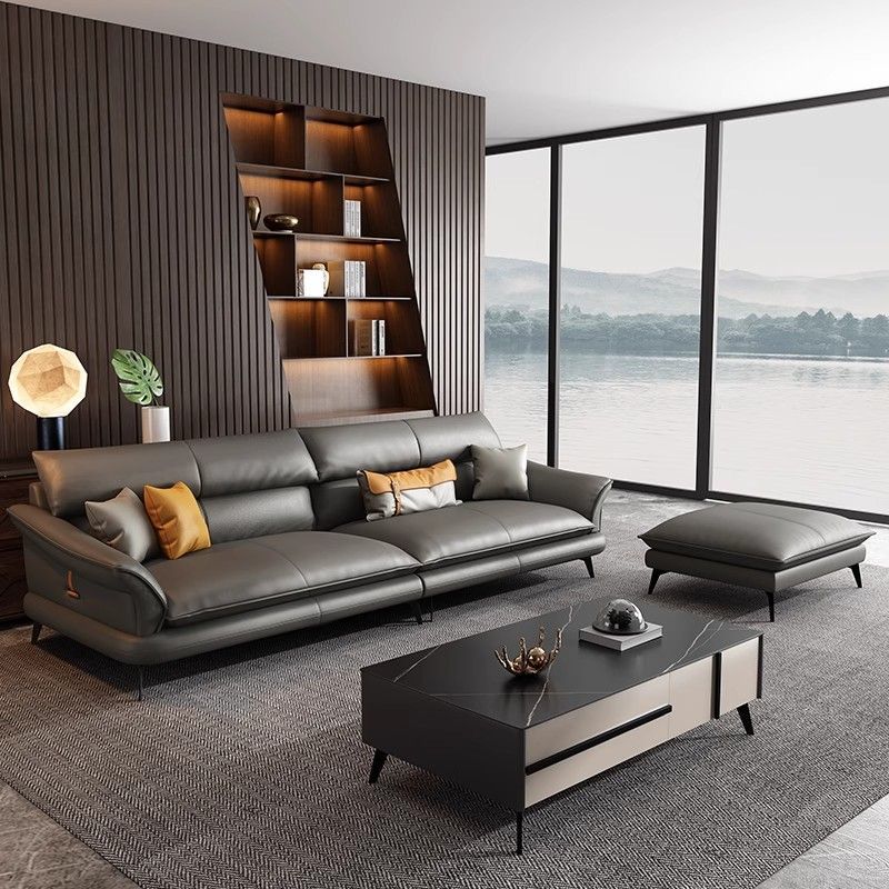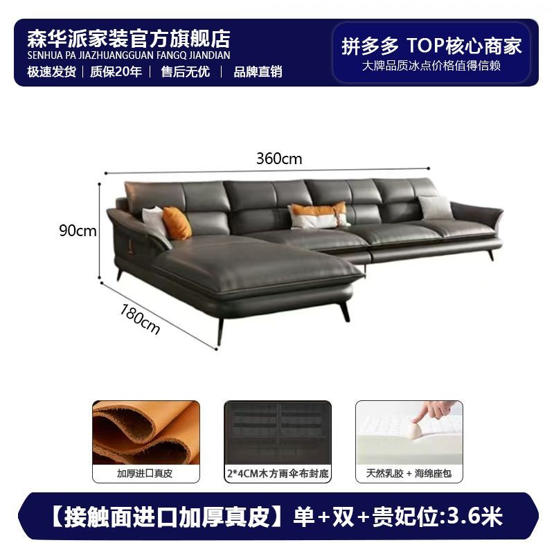 森华派意式极简真皮沙发客厅简约现代轻奢大小户型直排三人位沙发
