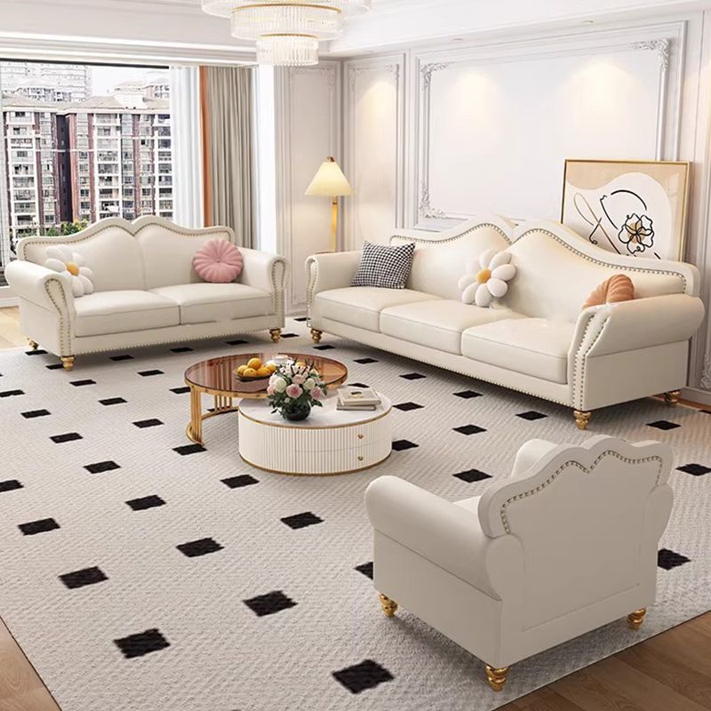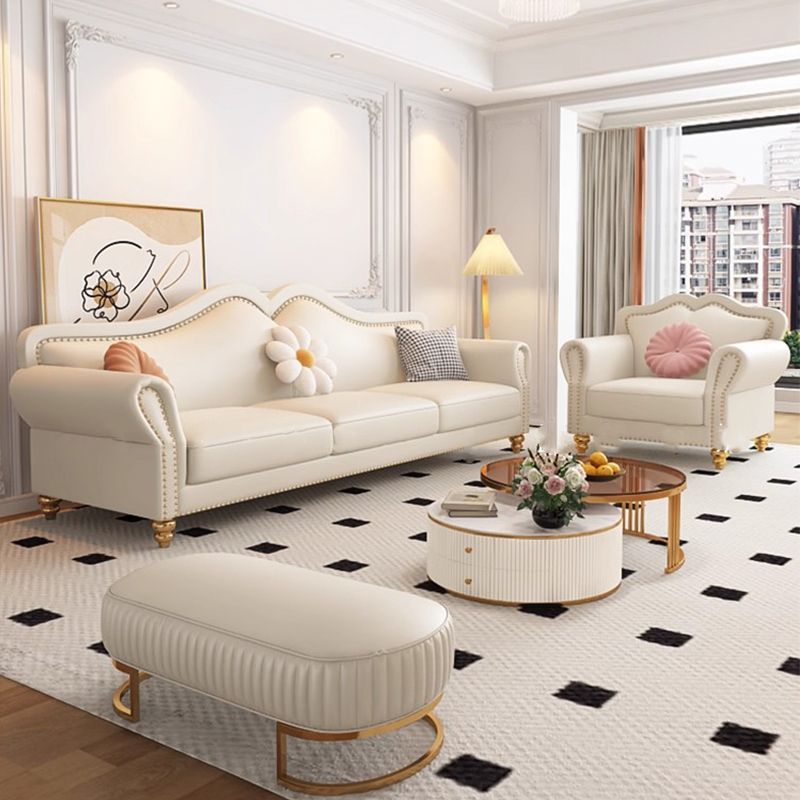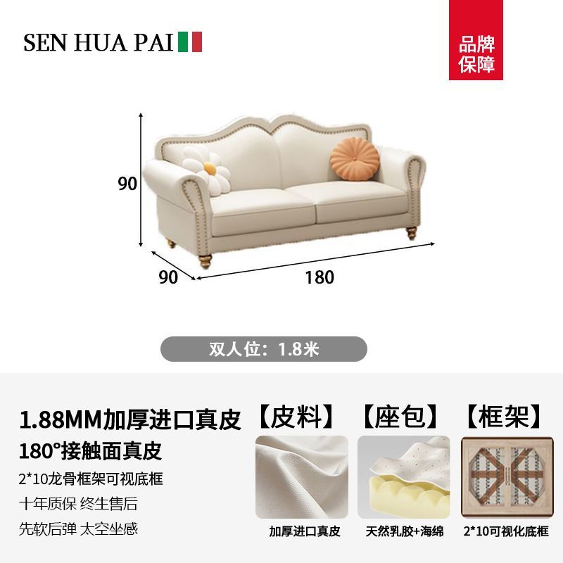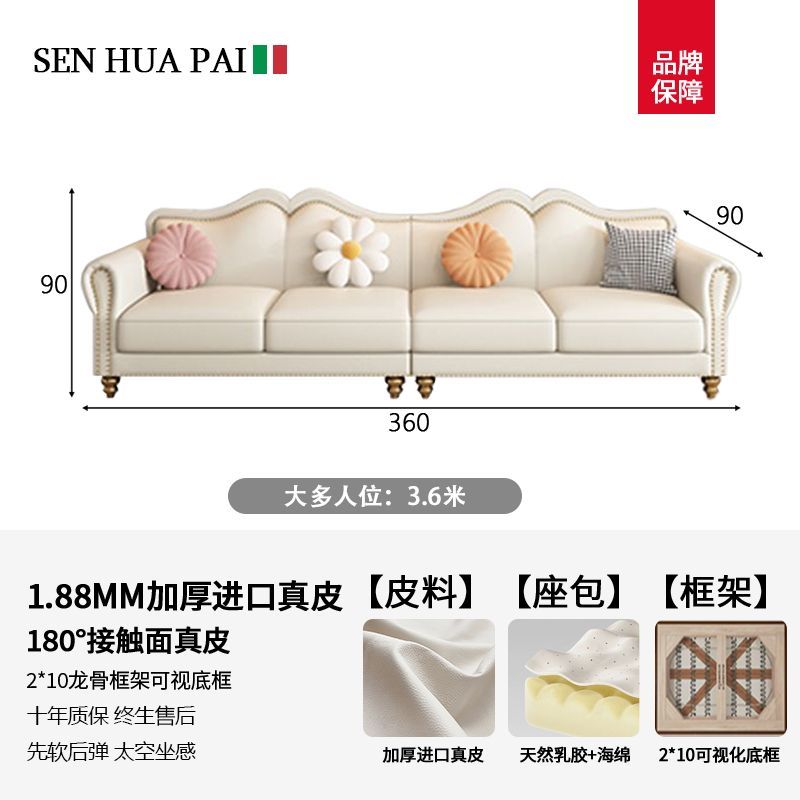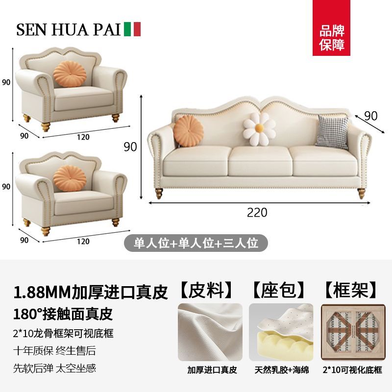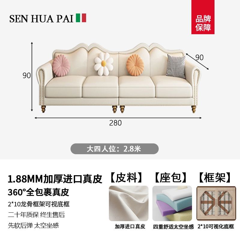 森华派简约欧式客厅轻奢真皮沙发大小户型三人直排奶油风皮艺沙发