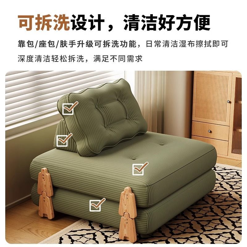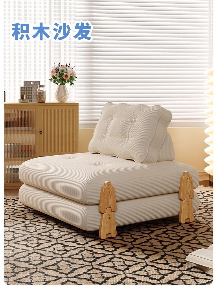模块积木可折叠组合沙发床实木单人两用小户型奶油风客厅懒人沙发