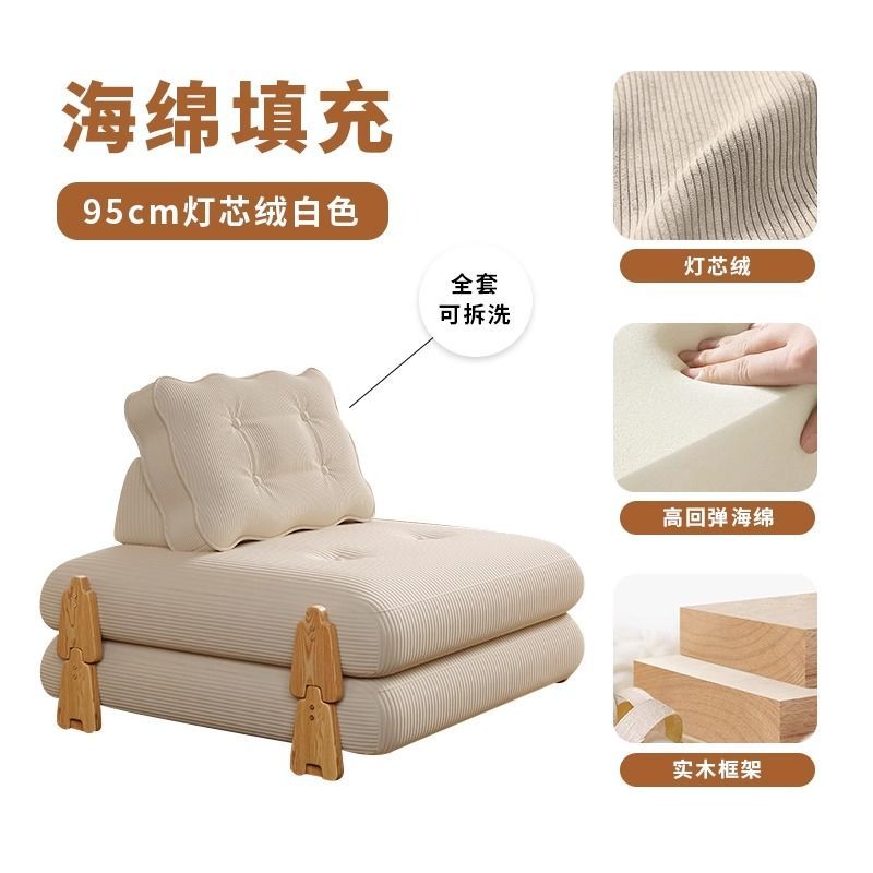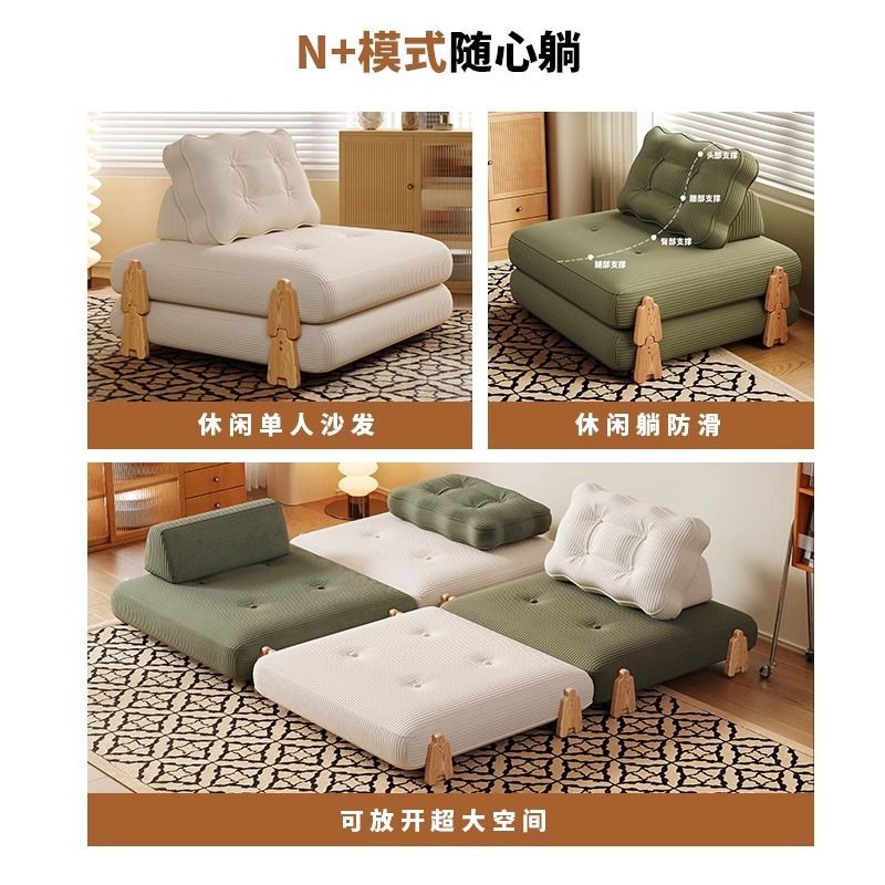 模块积木可折叠组合沙发床沙发实木单人两用小户型奶油客厅懒人