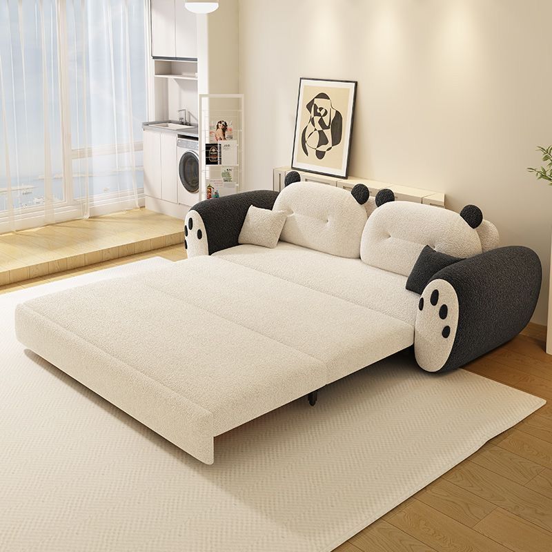 沙发床两用可爱奶油风小户型客厅多功能羊羔绒布双人直排新款沙发