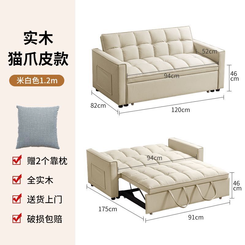 沙发床沙发简约两用可折叠折叠奶油布艺沙发多功能小户型客厅双人