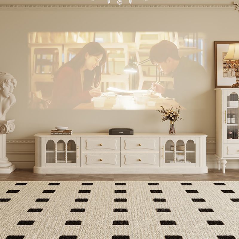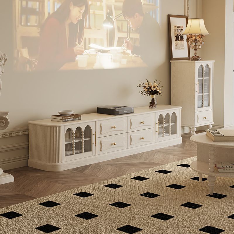 法式复古全实木奶油风电视柜客厅小户型收纳储物柜一体美式置物柜