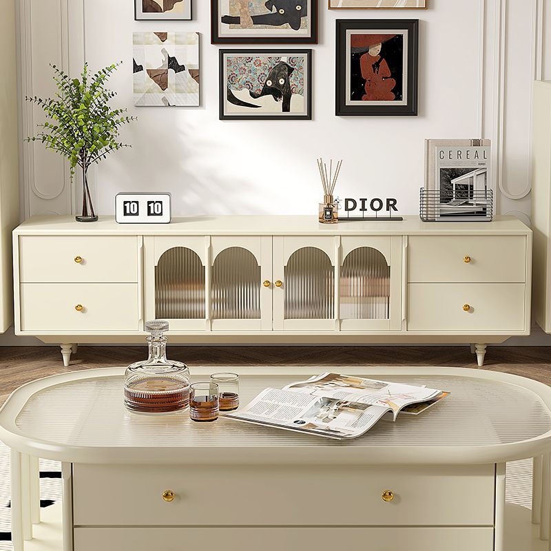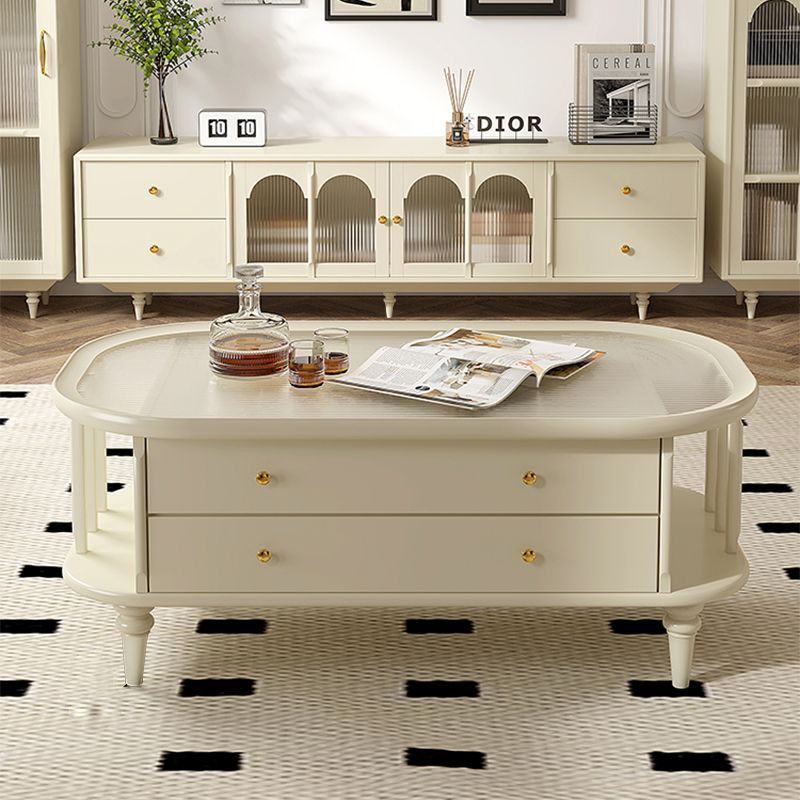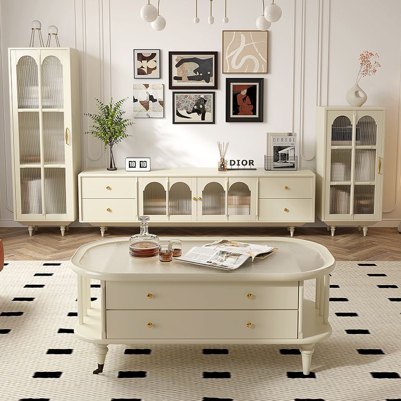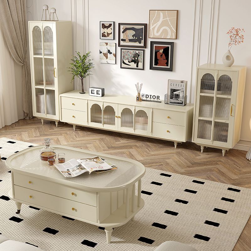 法式奶油风100%全实木电视柜客厅轻奢美式小户型茶几组合现代家具