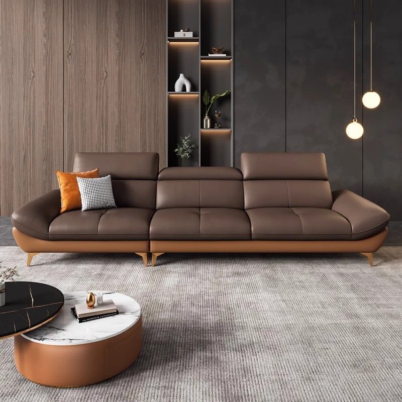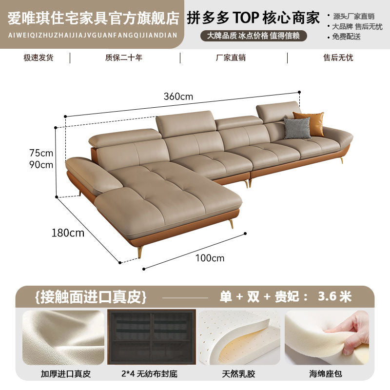 爱唯琪意式轻奢真皮沙发客厅现代简约直排三人位大小户型高脚沙发