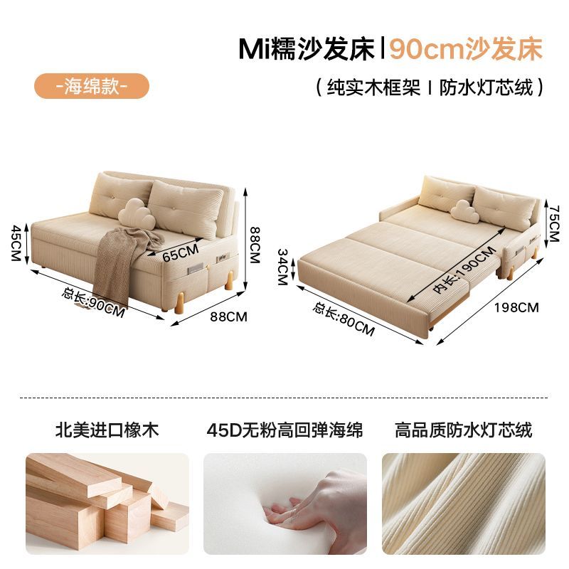 现代极简风沙发灯芯绒小户型沙发床奶油风可折叠两用可伸缩沙发床
