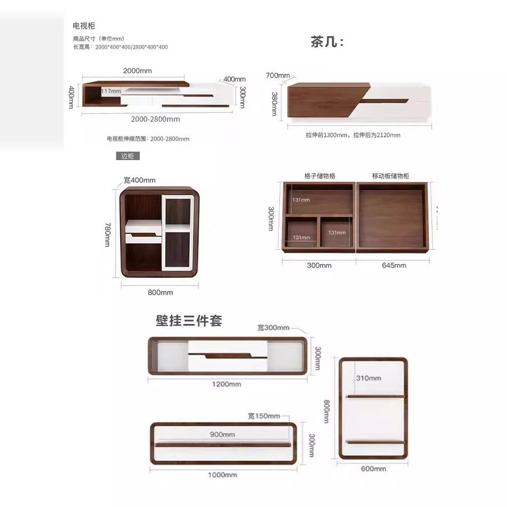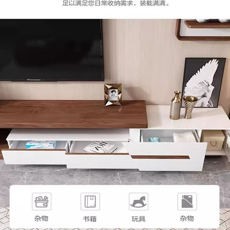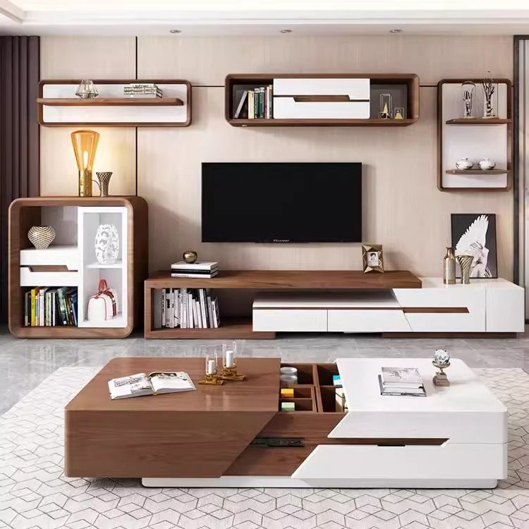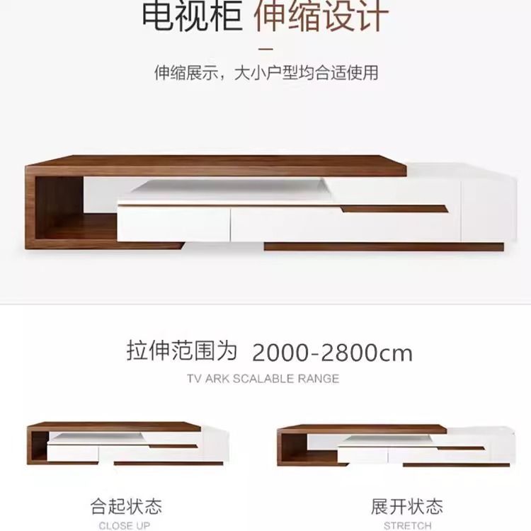 现代简约时尚中古风伸缩电视柜多功能茶几组合家用客厅家具