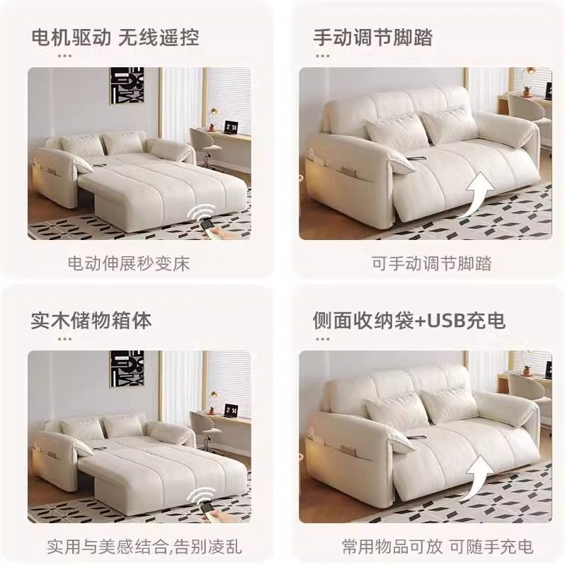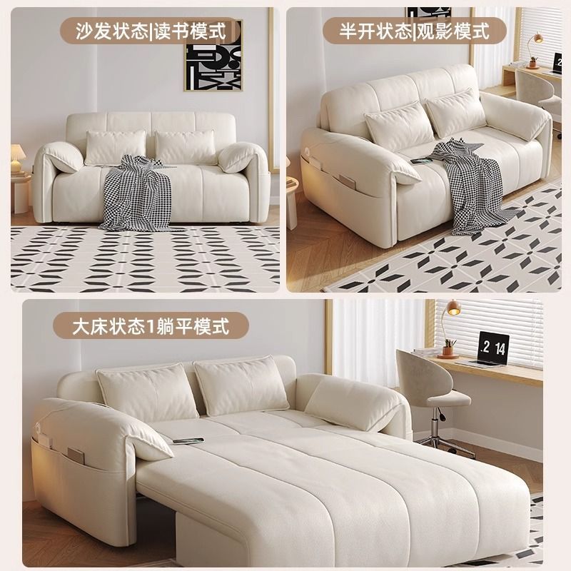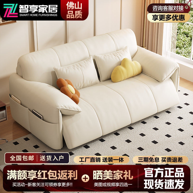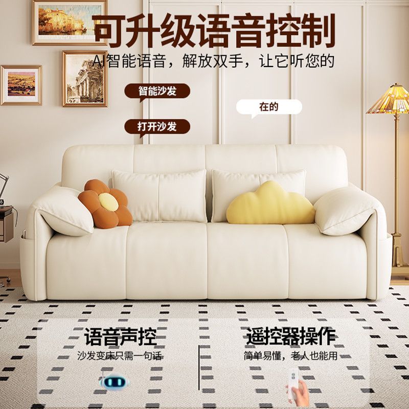 电动新款进口半青皮沙发床伸缩可折叠多功能沙发床智能单人沙发
