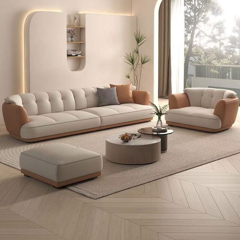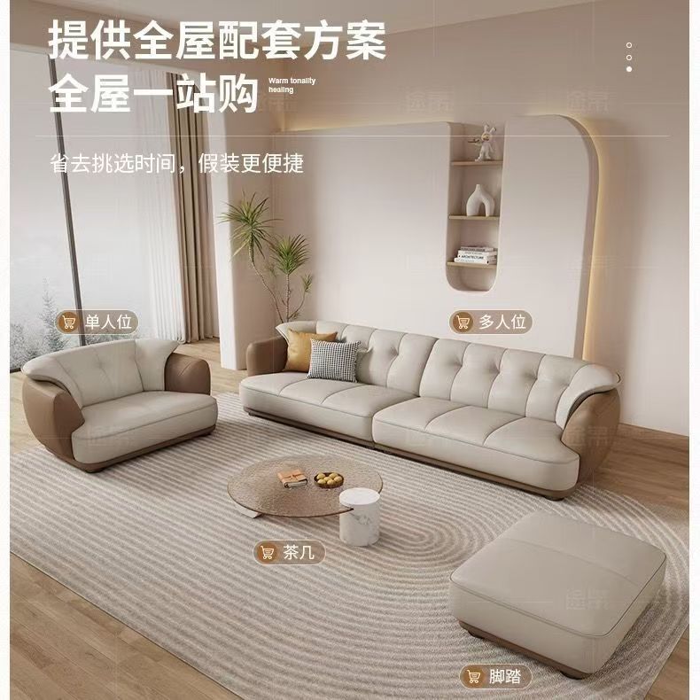 真皮沙发客厅弧形大小户型简约现代四人三人乳胶软靠休闲意式组合