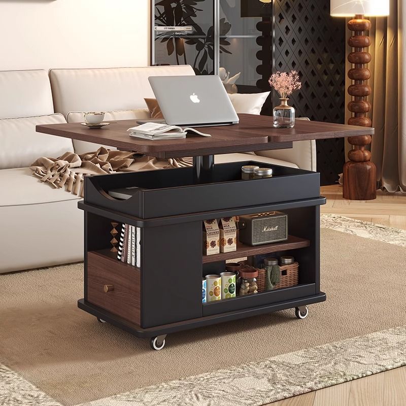 移动折叠茶几客厅小户型沙发实木边柜多功能升降小推车家用茶桌