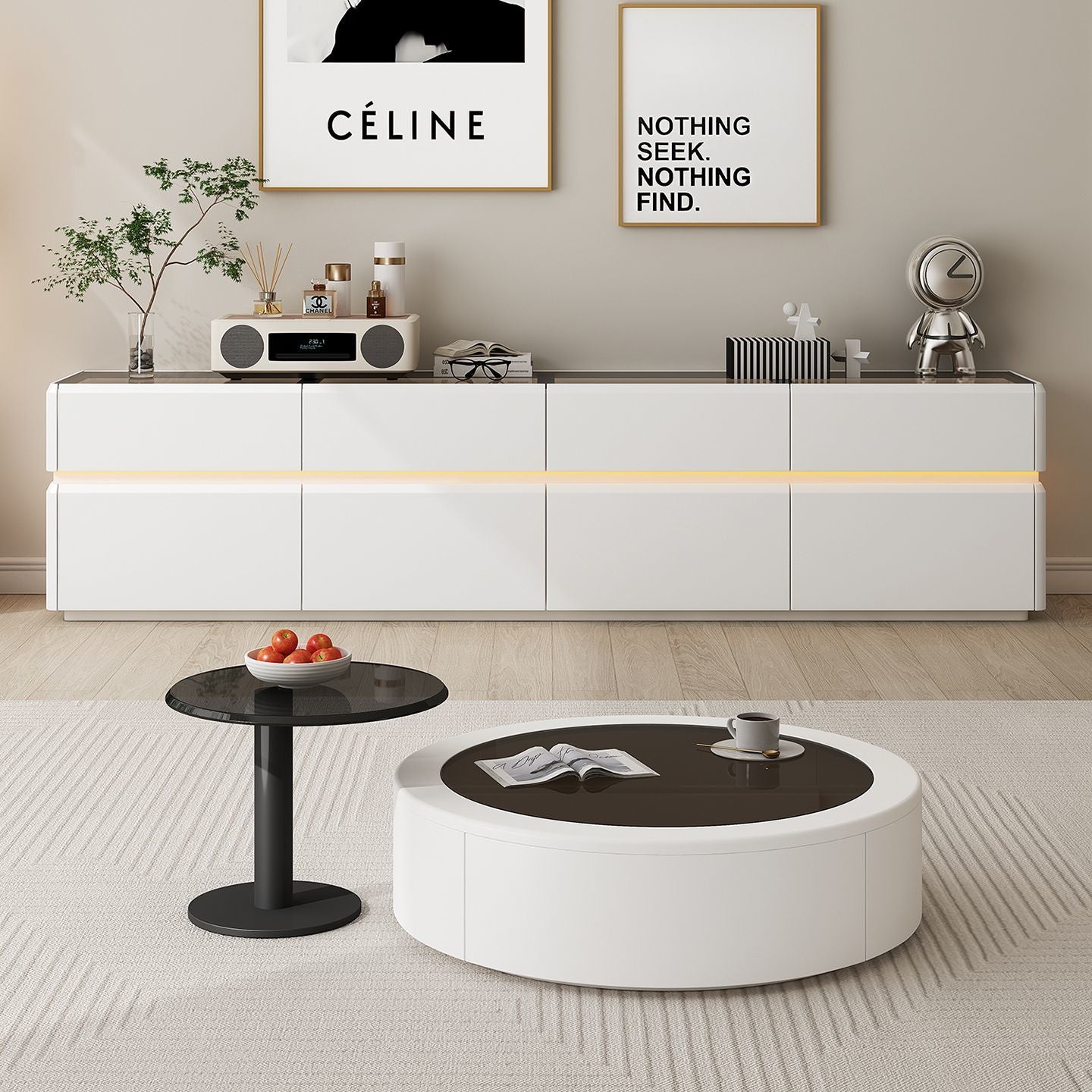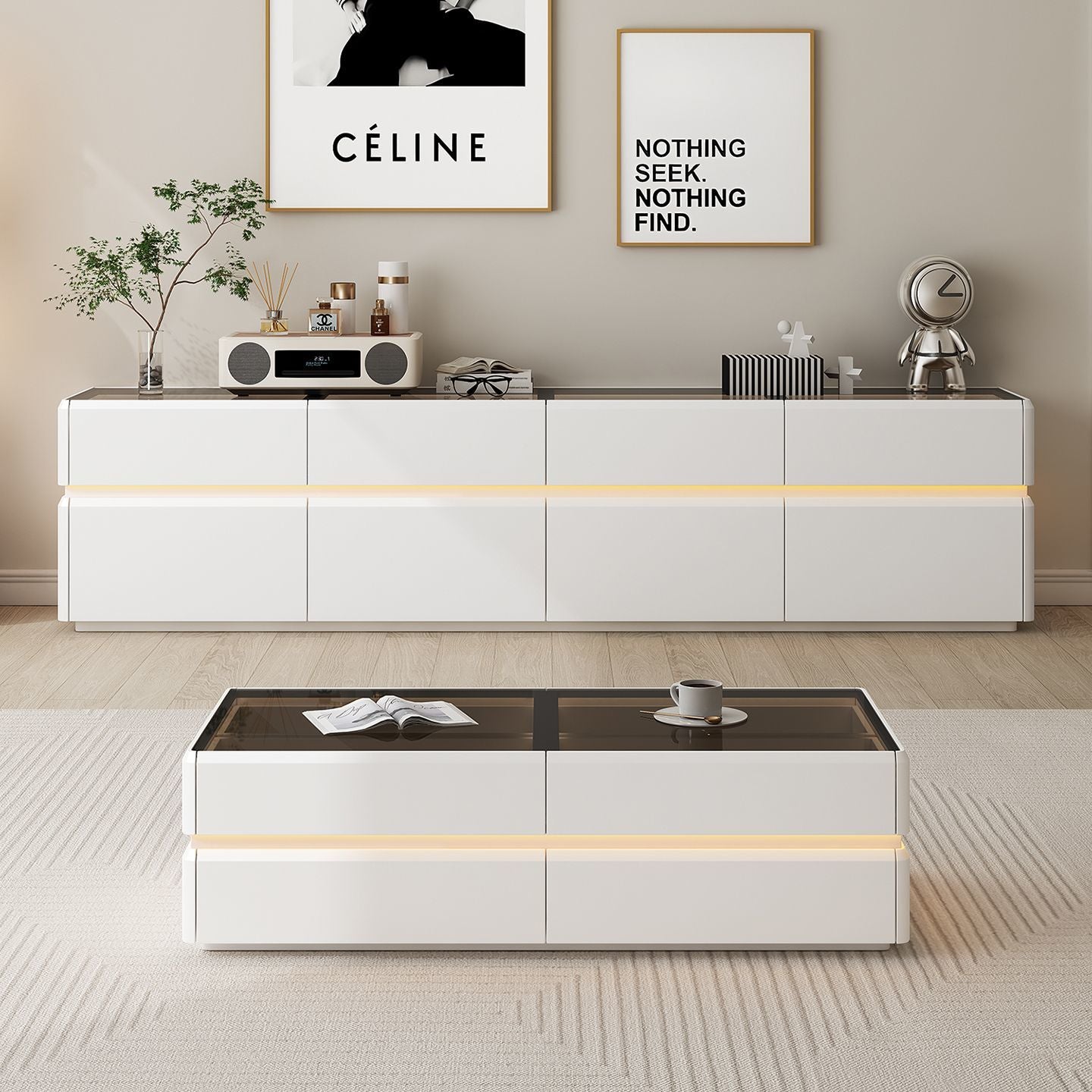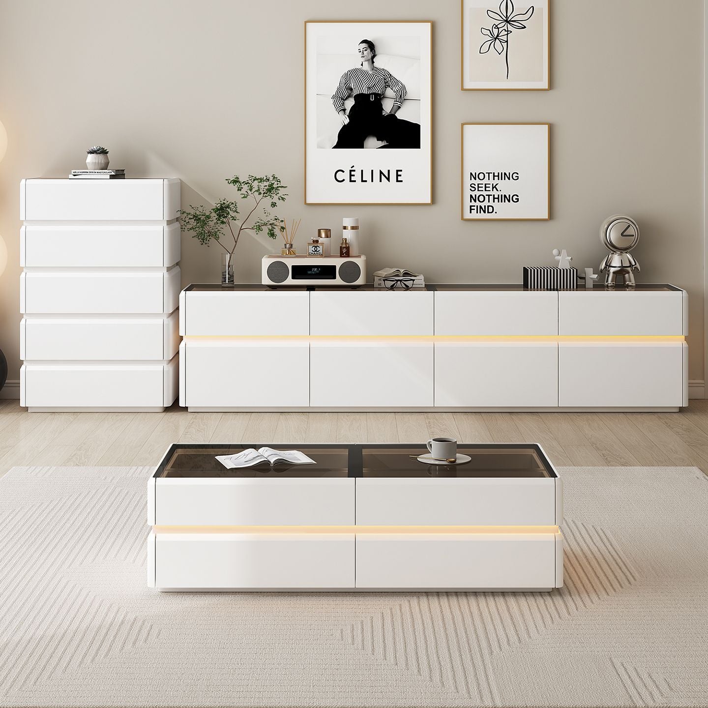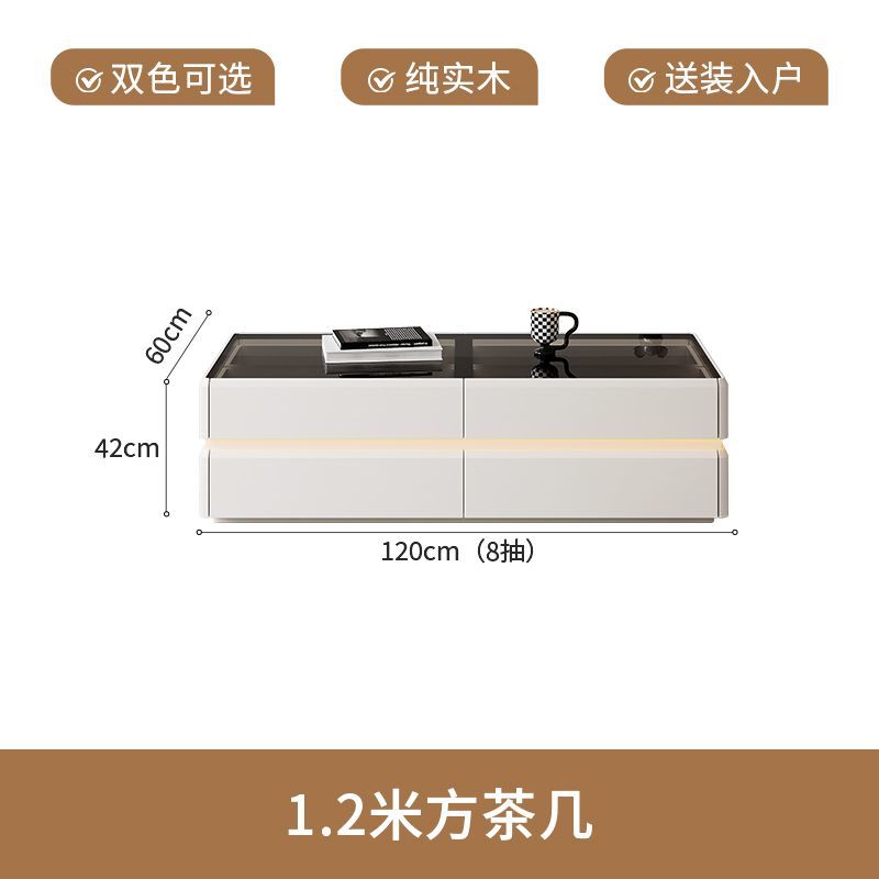 纯实木高款电视柜茶几简约现代家用客厅小户型轻奢奶油风落地柜新
