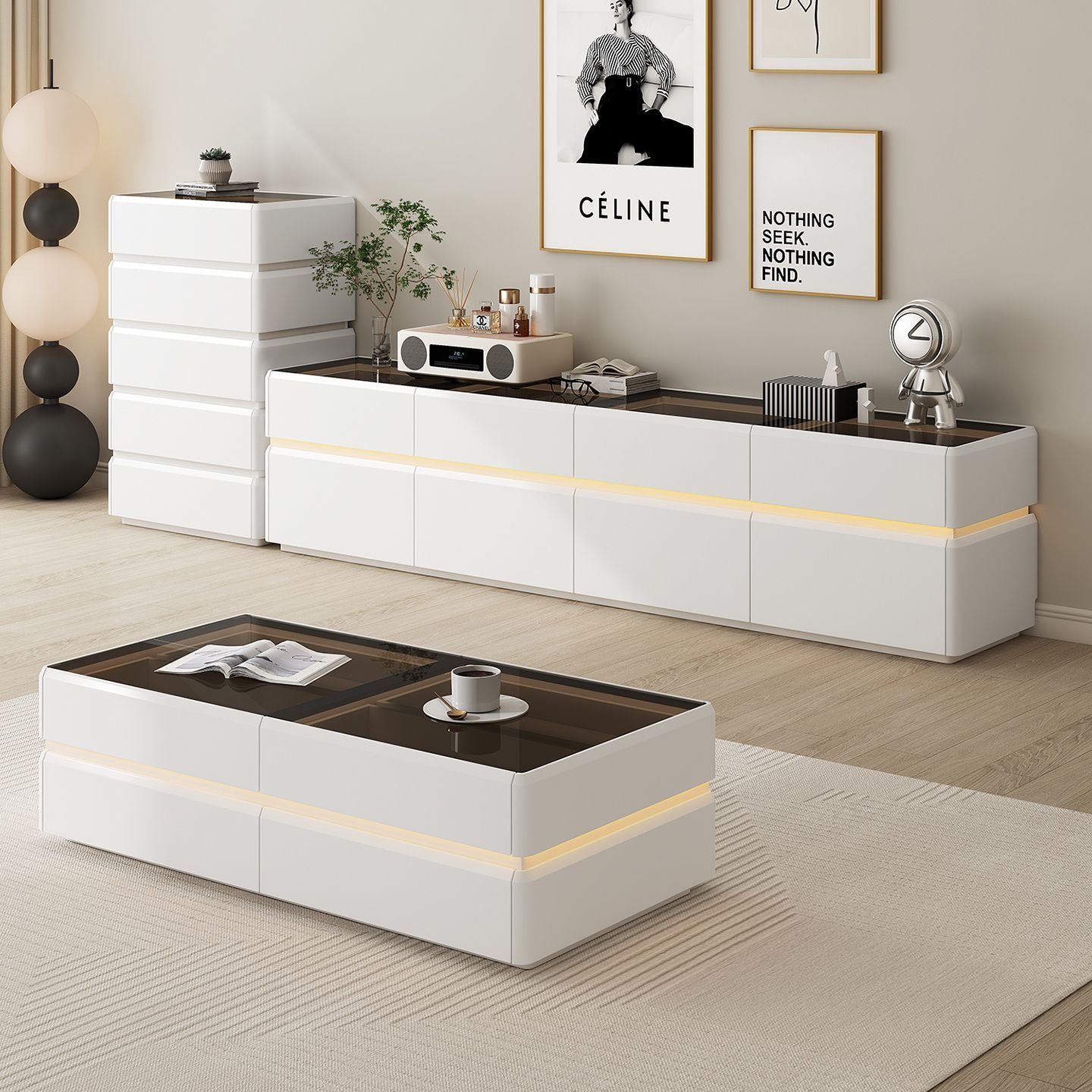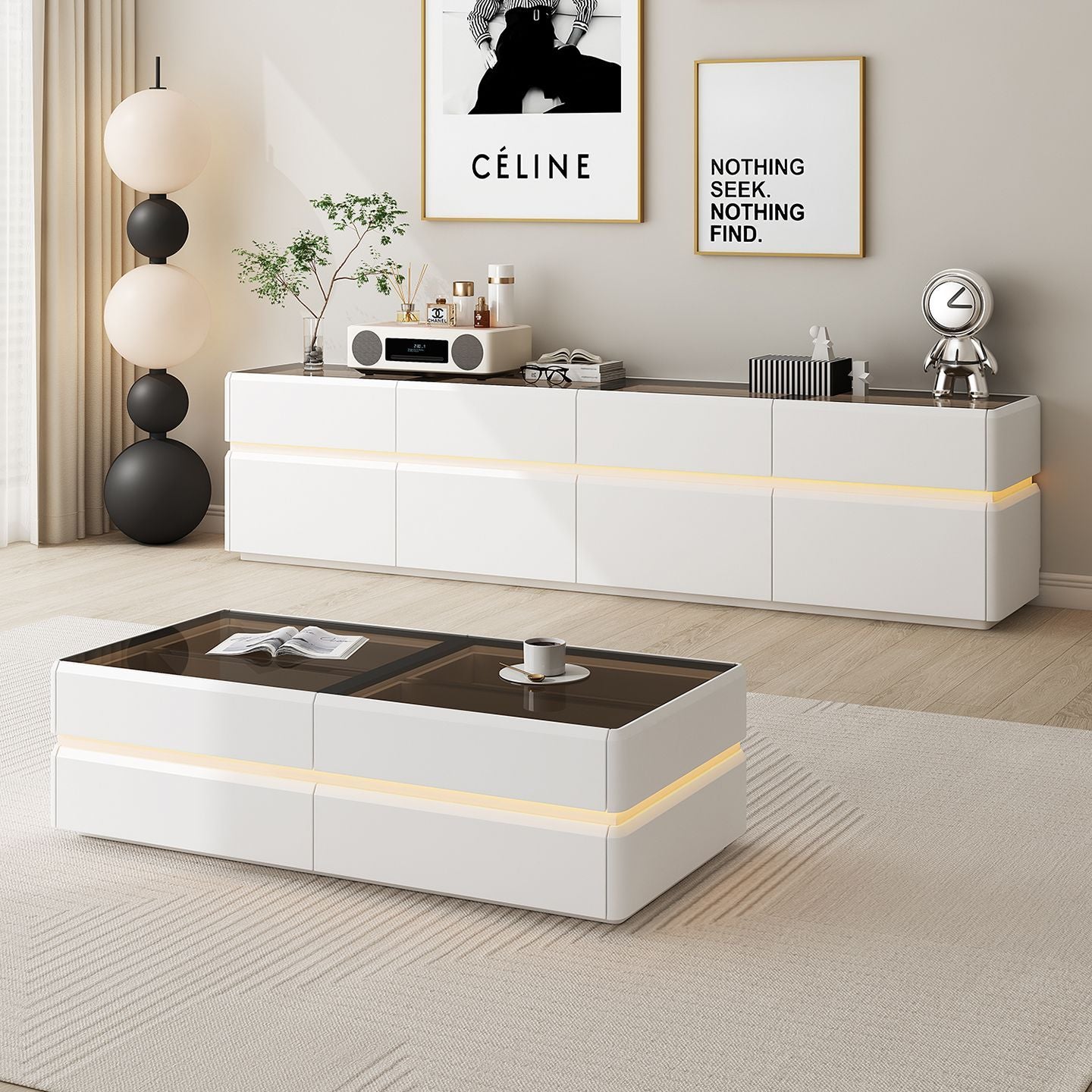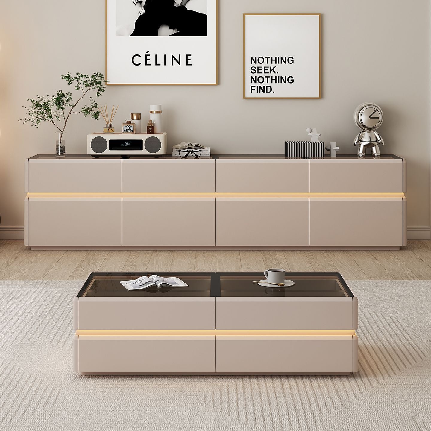 纯实木高款电视柜茶几简约现代家用客厅小户型轻奢奶油风落地柜新