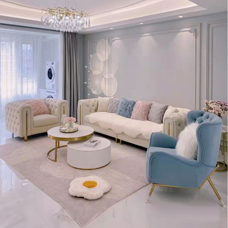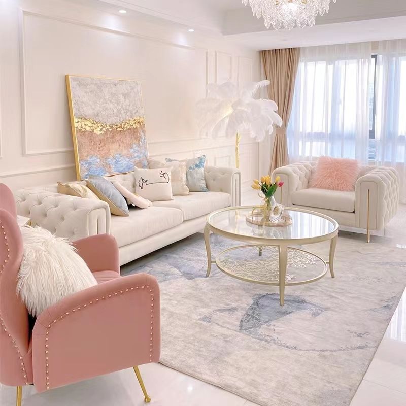 美式轻奢客厅免洗款猫抓爪布科技布奶油风小户型法式拉扣网红沙发