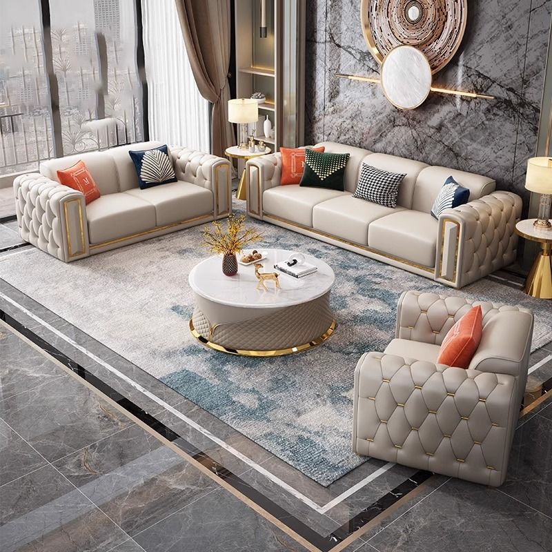美式轻奢风格沙发客厅新款头层牛皮别墅沙发奢华简约高级沙发组合