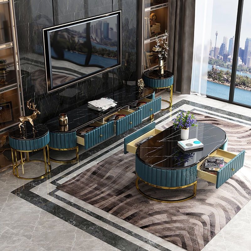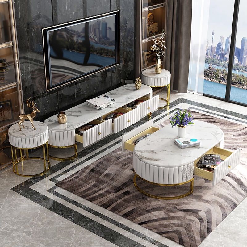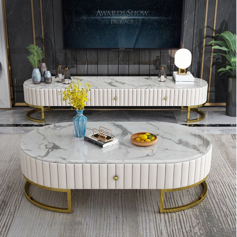 轻奢大理石茶几电视柜组合后现代简约小户型客厅整装港式意式家具