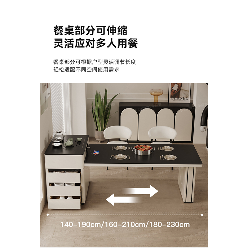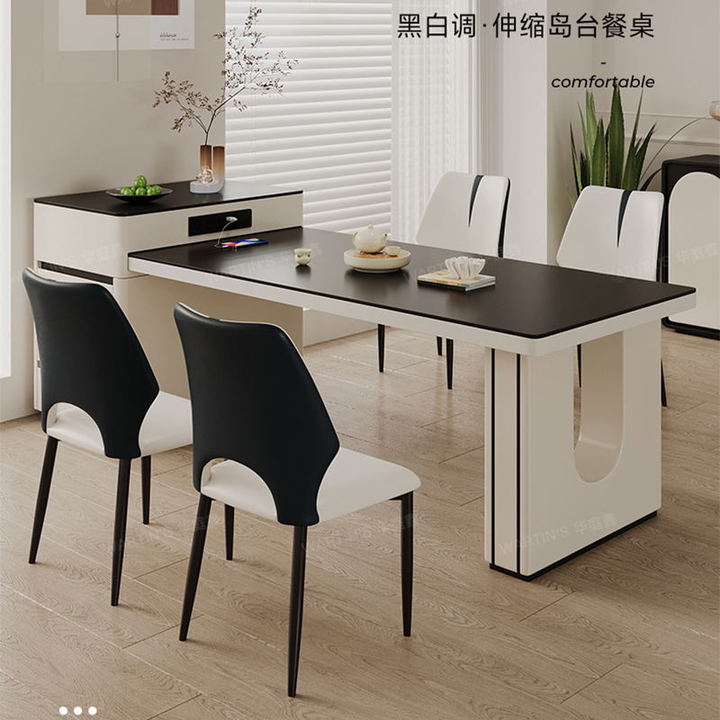轻奢岩板岛台餐桌小户型家用简约可伸缩储物多功能设计师吃饭桌子