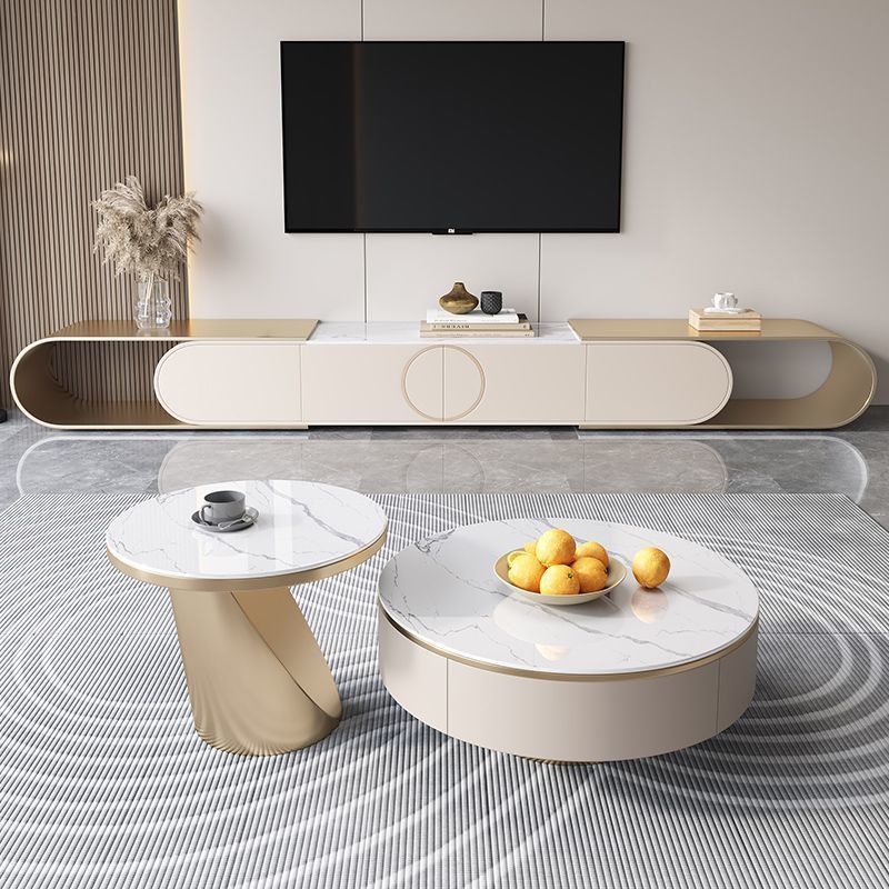 轻奢岩板电视机柜茶几组合网红整装家用高级家居落地电视柜
