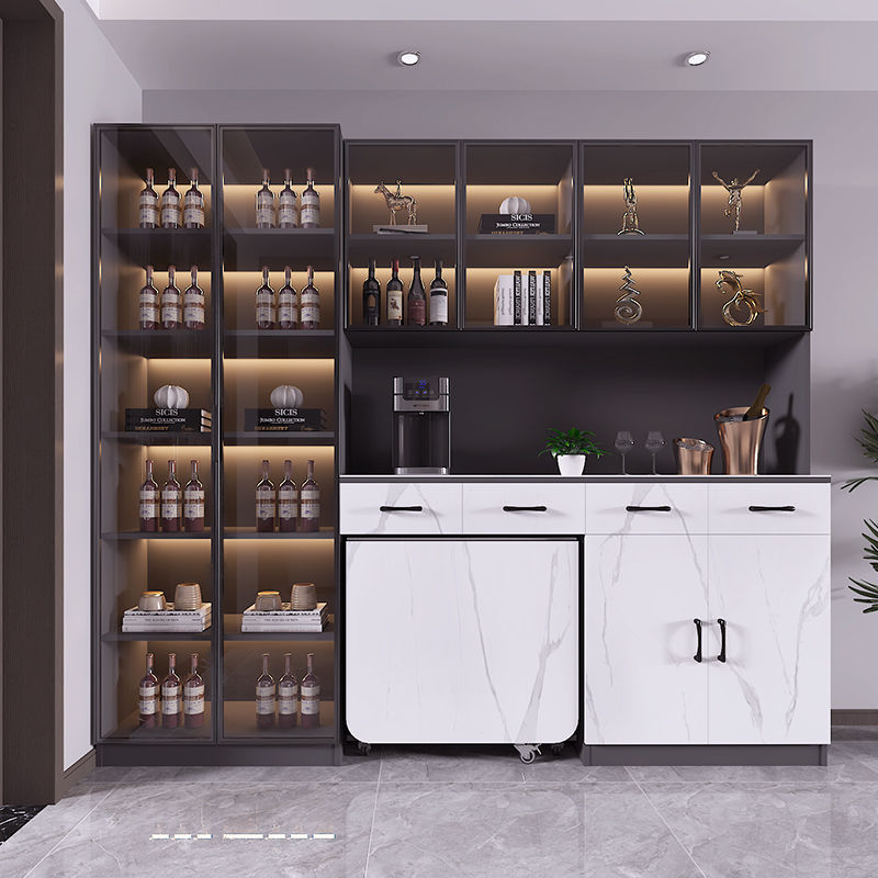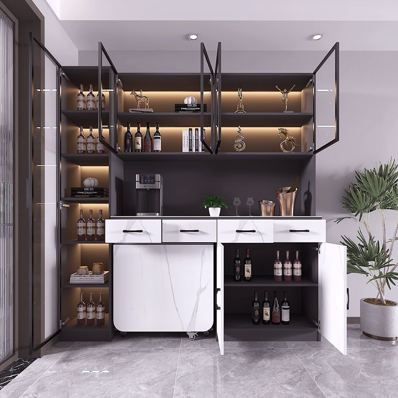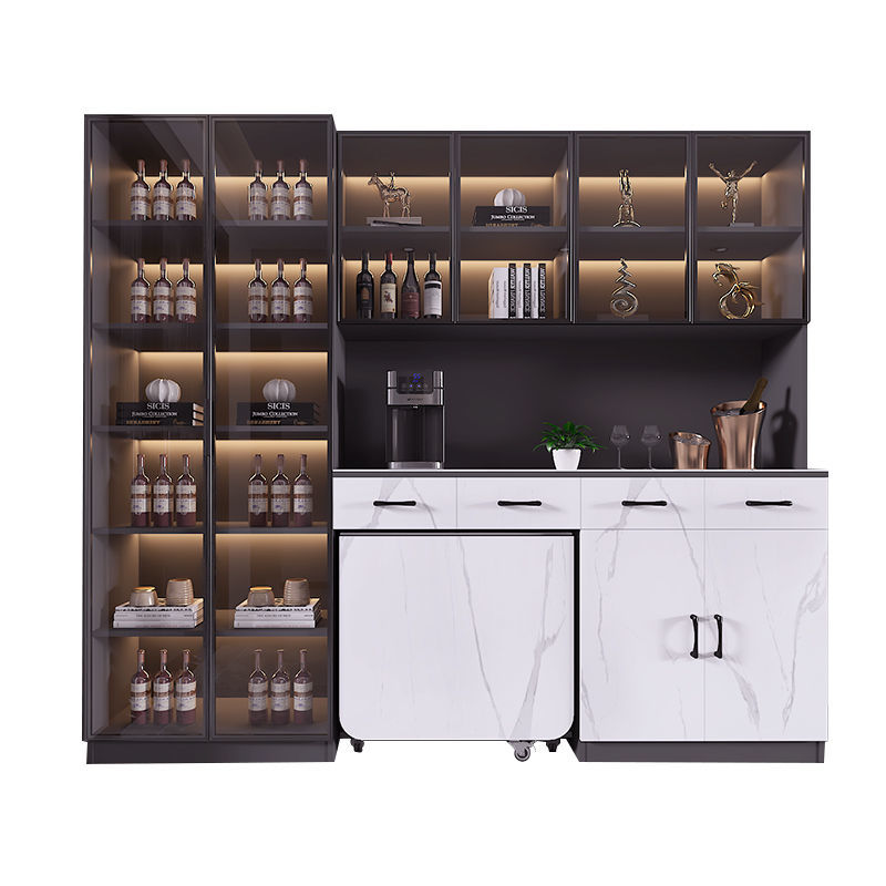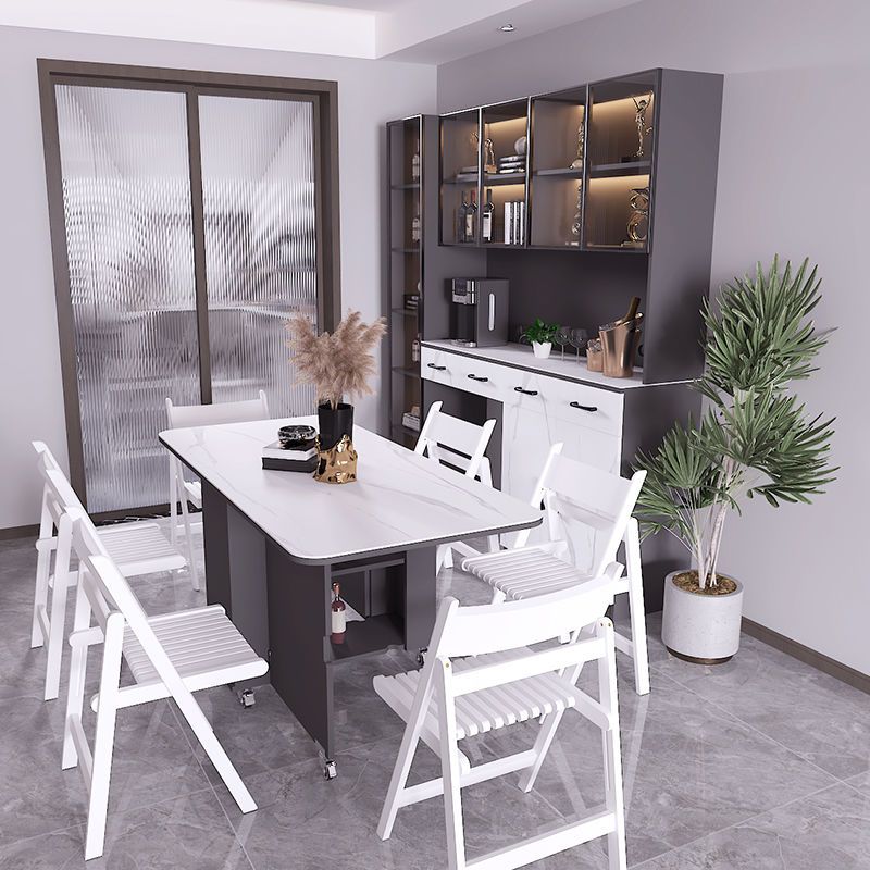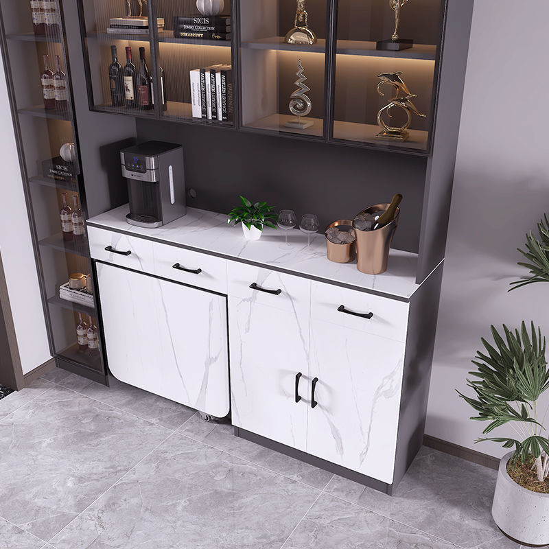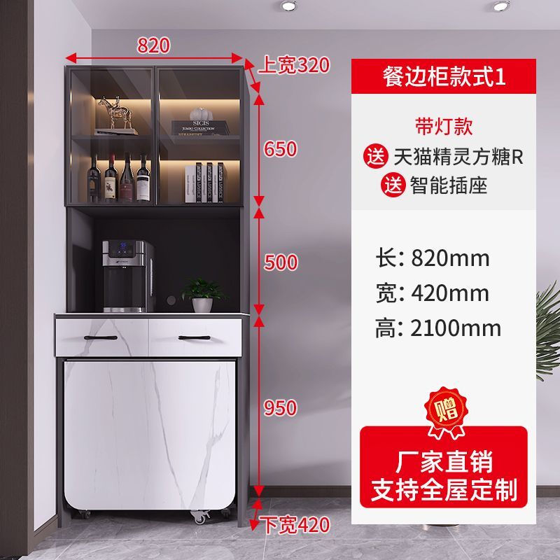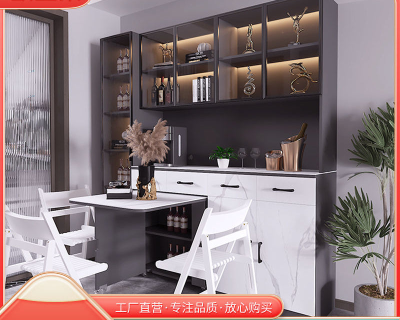 轻奢岩板餐边柜折叠餐桌一体靠墙高柜家用小户型客餐厅酒柜饭桌