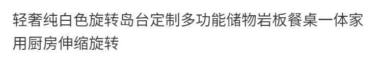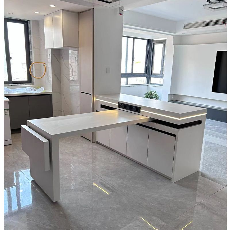 轻奢纯白色旋转岛台定制多功能储物岩板餐桌一体家用厨房伸缩旋转