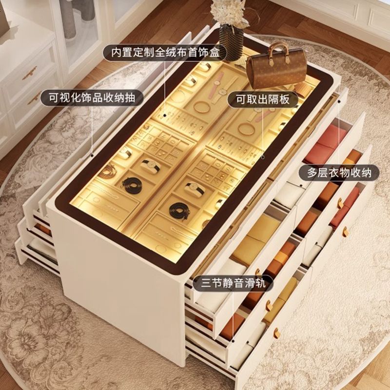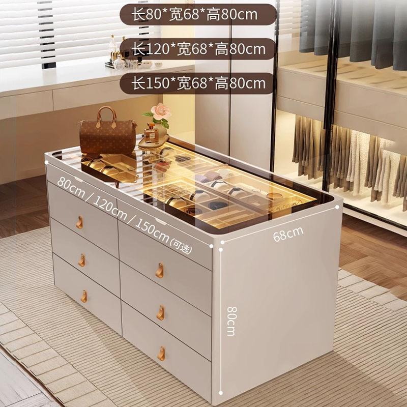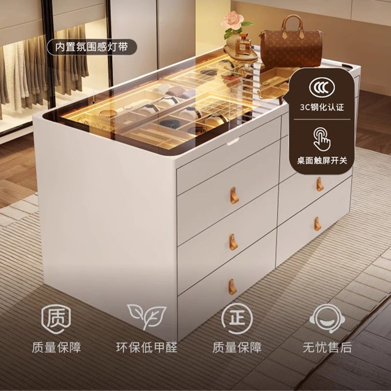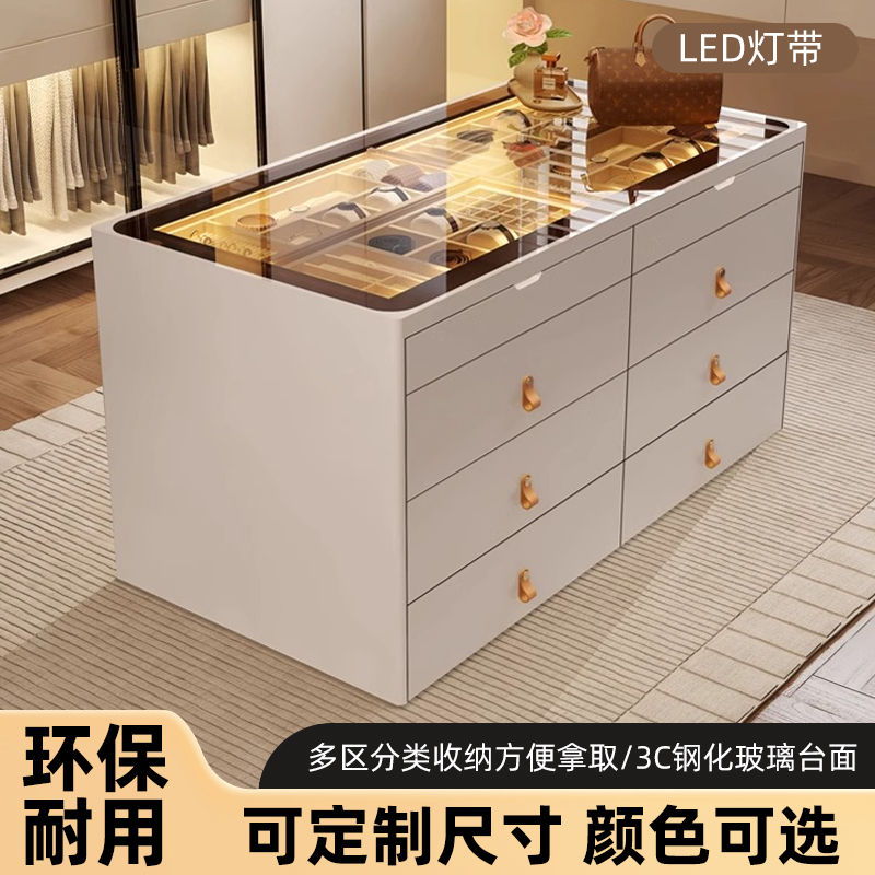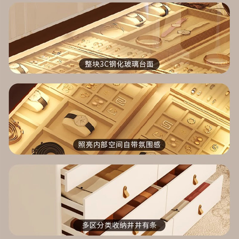10086超能装的首饰框3C钢化玻璃台面LED灯带多区分类收纳柜台高端