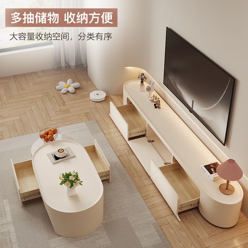 2024年新款网红奶油风落地现代简约小户型家用客厅茶几电视柜组合