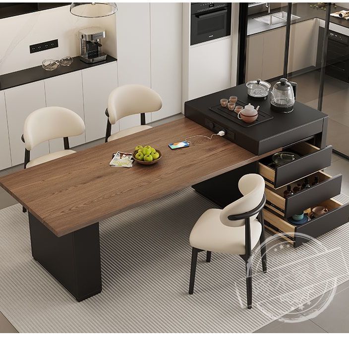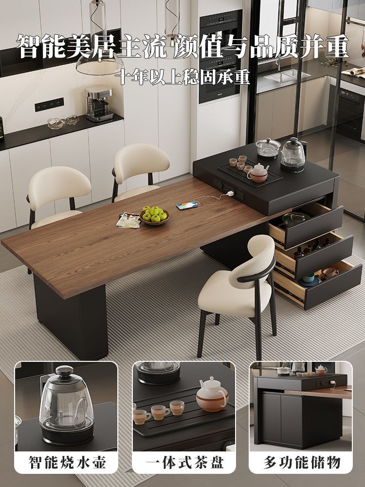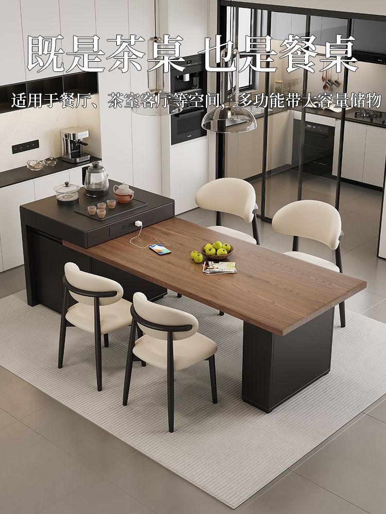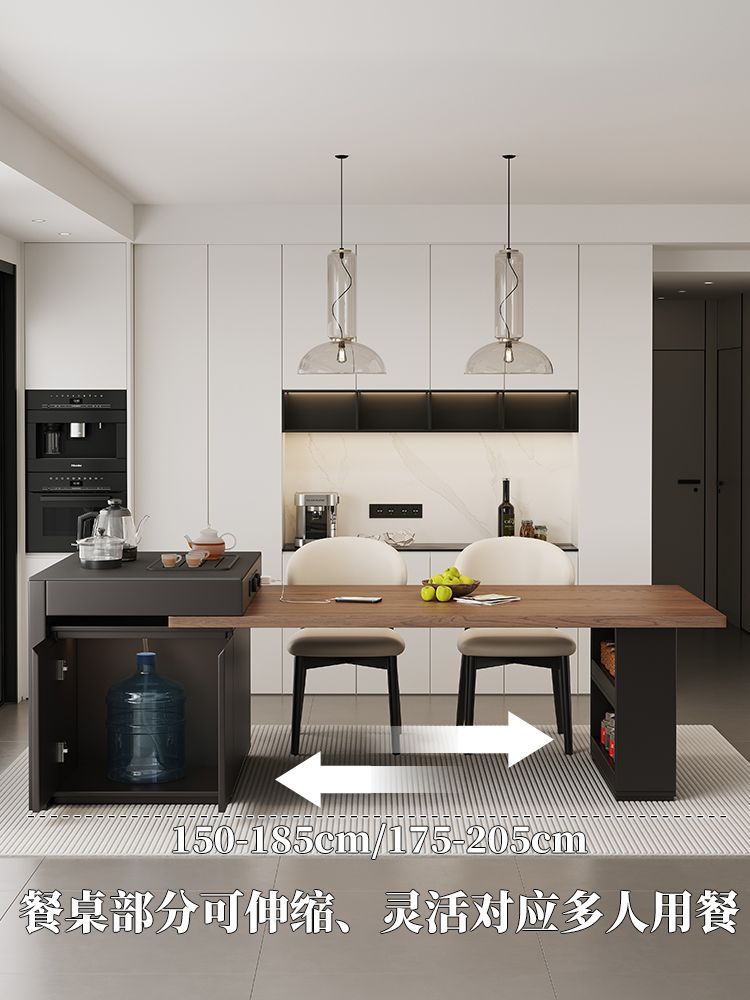 2025意式餐桌收纳岛台餐桌可伸缩极简多功能拉伸餐桌意式极简餐桌