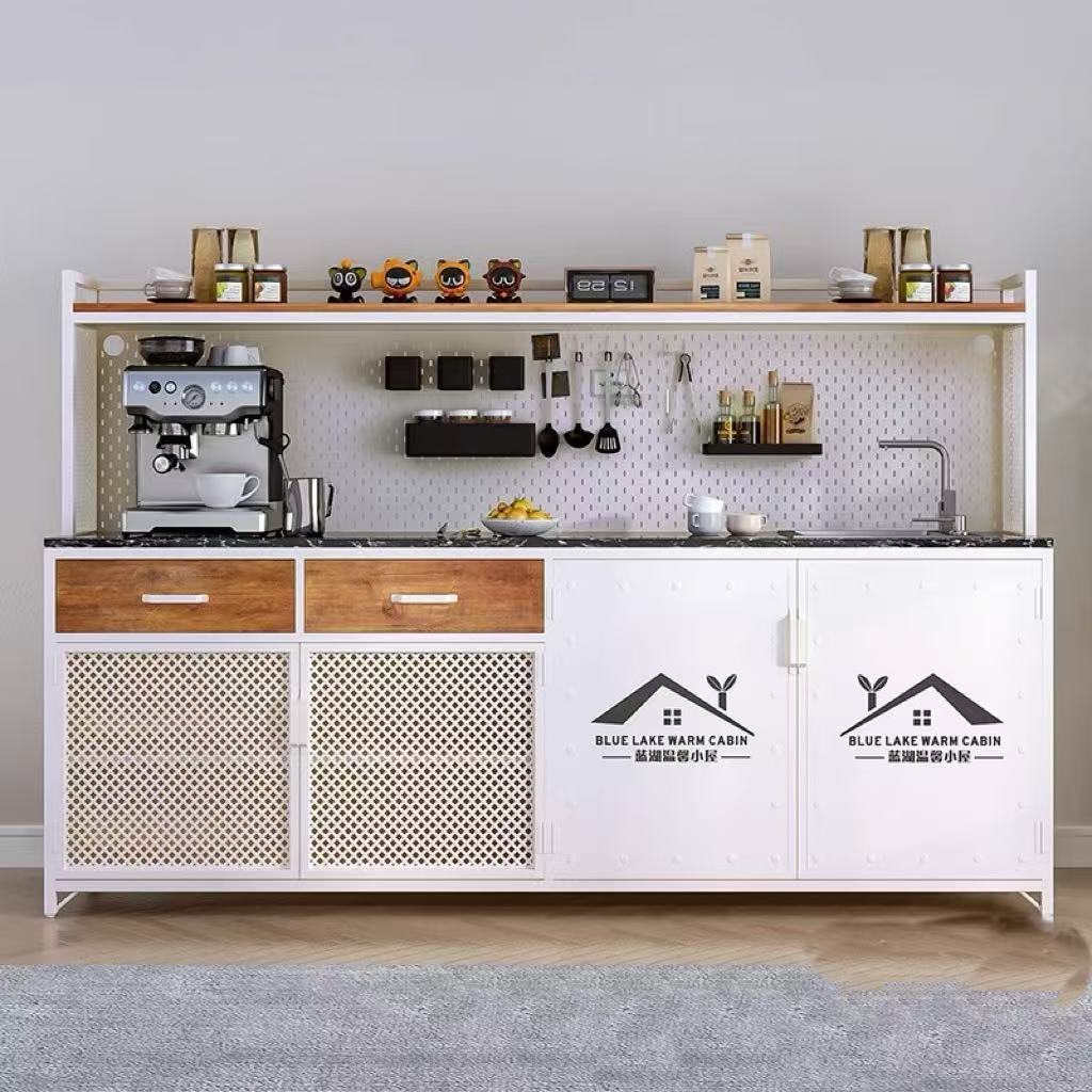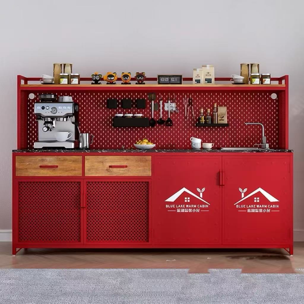 办公室水吧台一体柜餐边柜靠墙公司茶水柜咖啡柜洗手池操作台柜