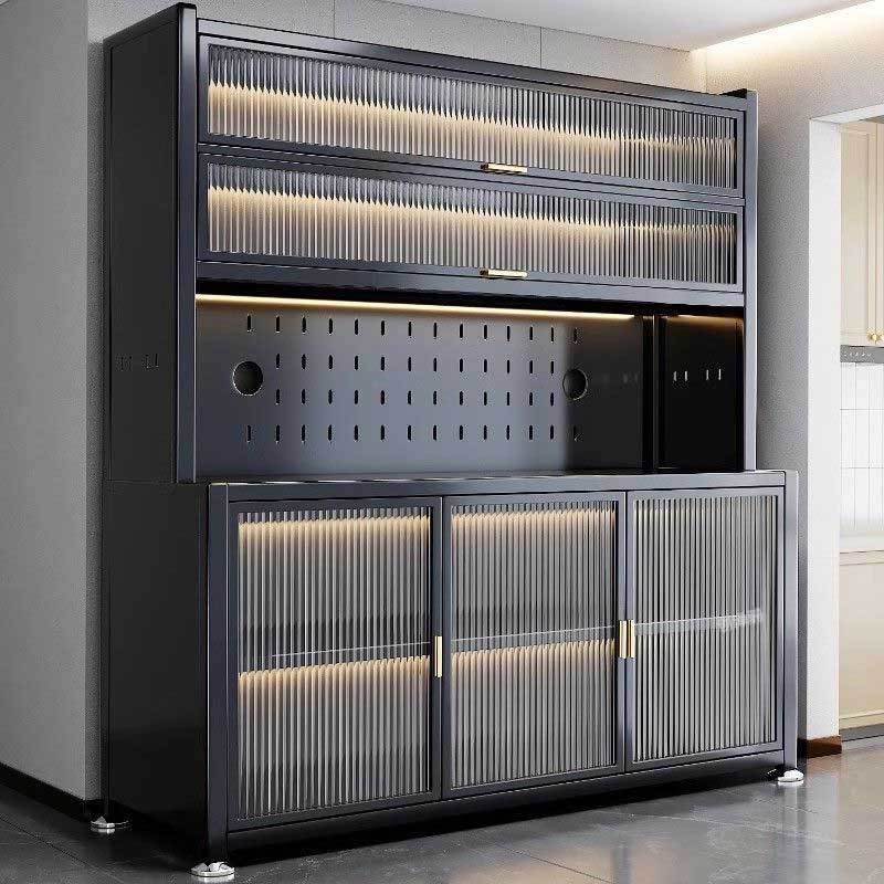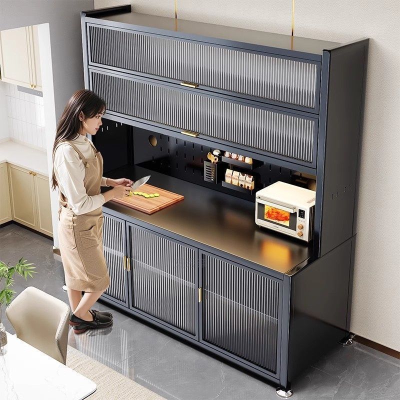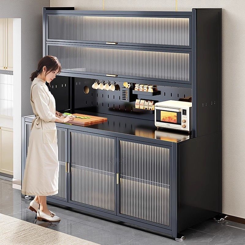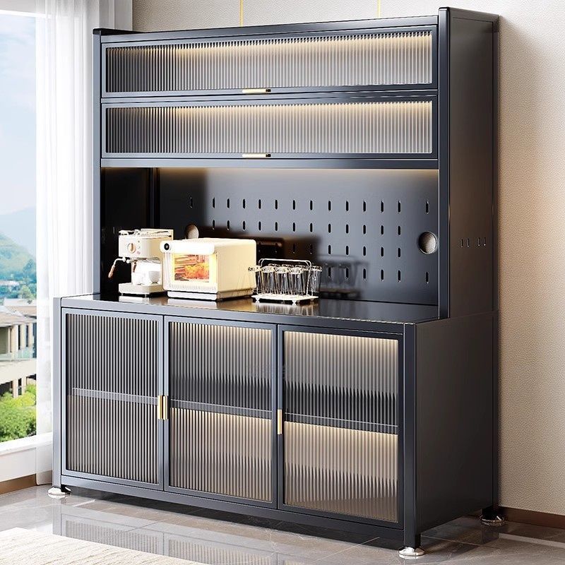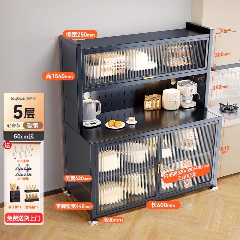 厨房多层餐边柜落地多功能置物架微波炉烤箱钢制收纳柜家用储物柜
