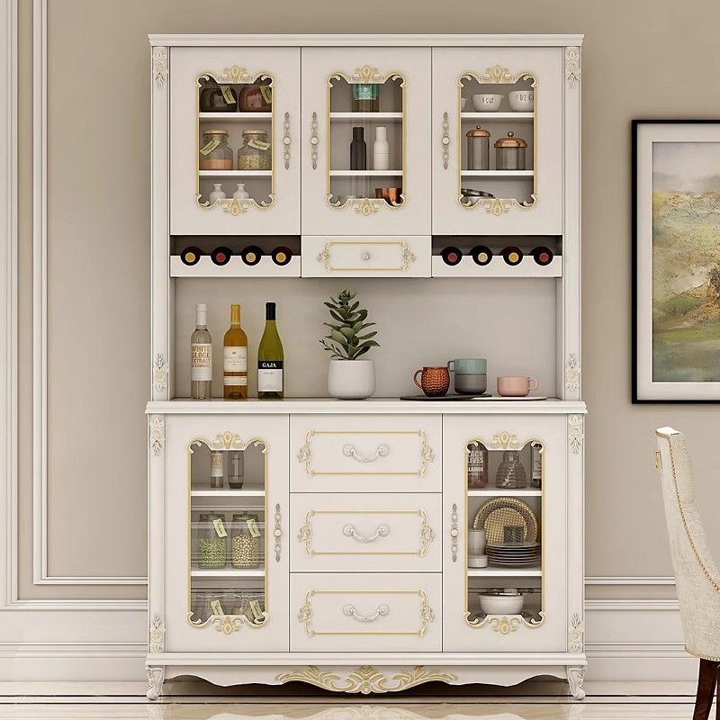 欧式餐边柜高柜一体靠墙白色酒柜厨房置物柜家用客厅多功能储物柜