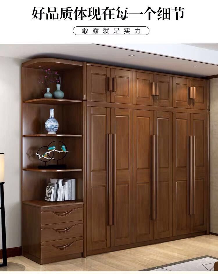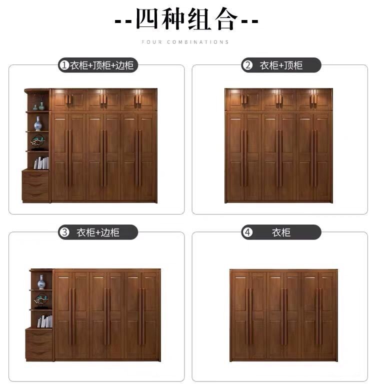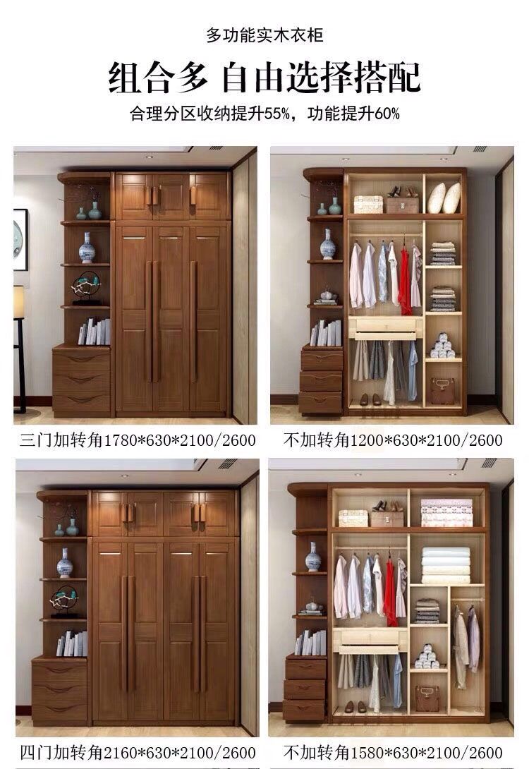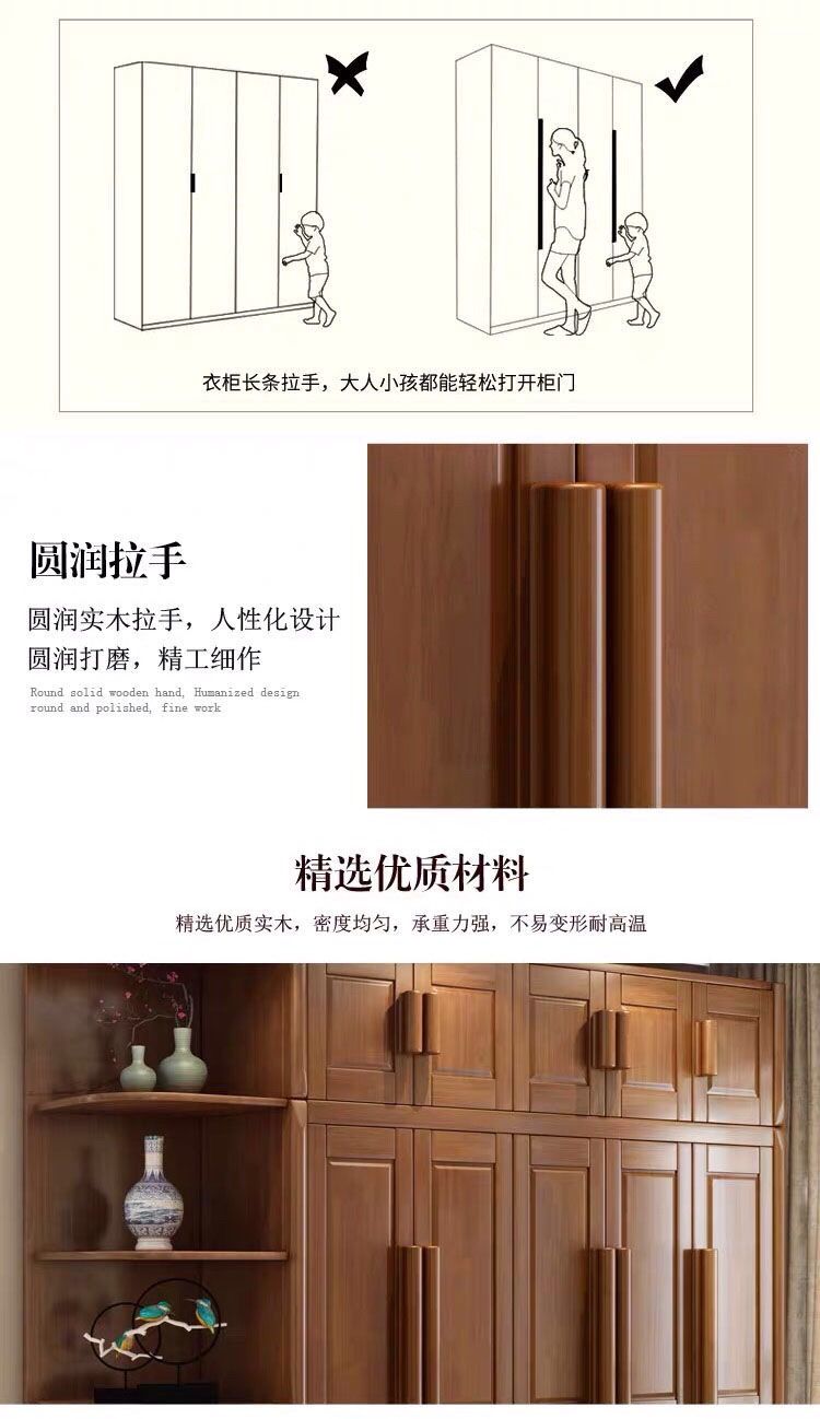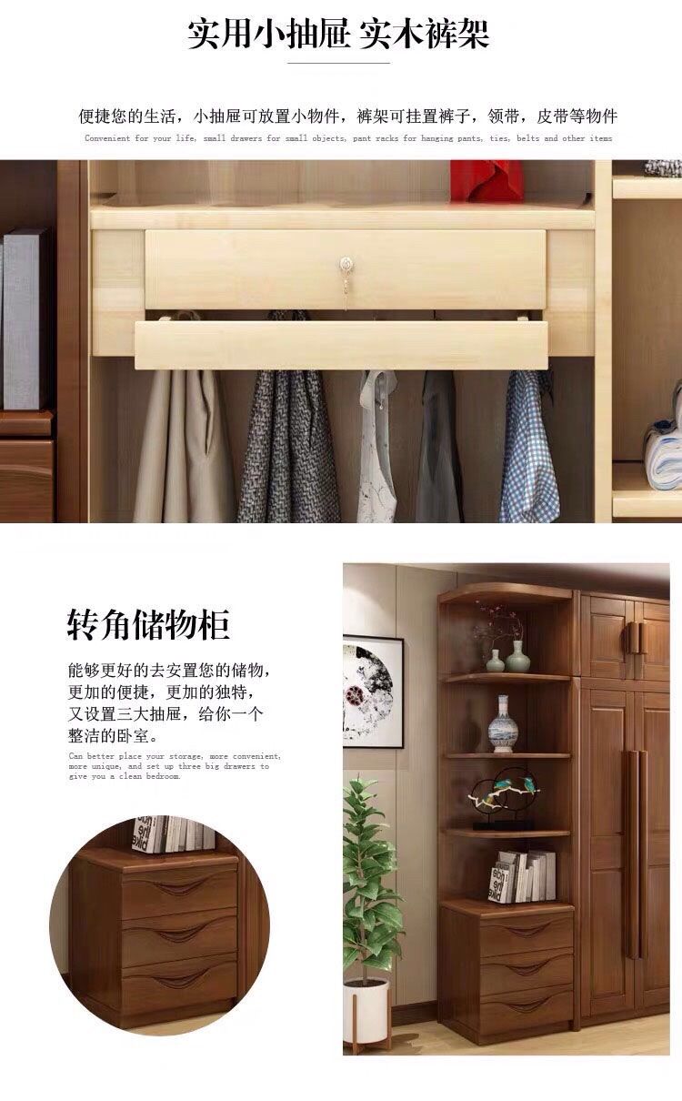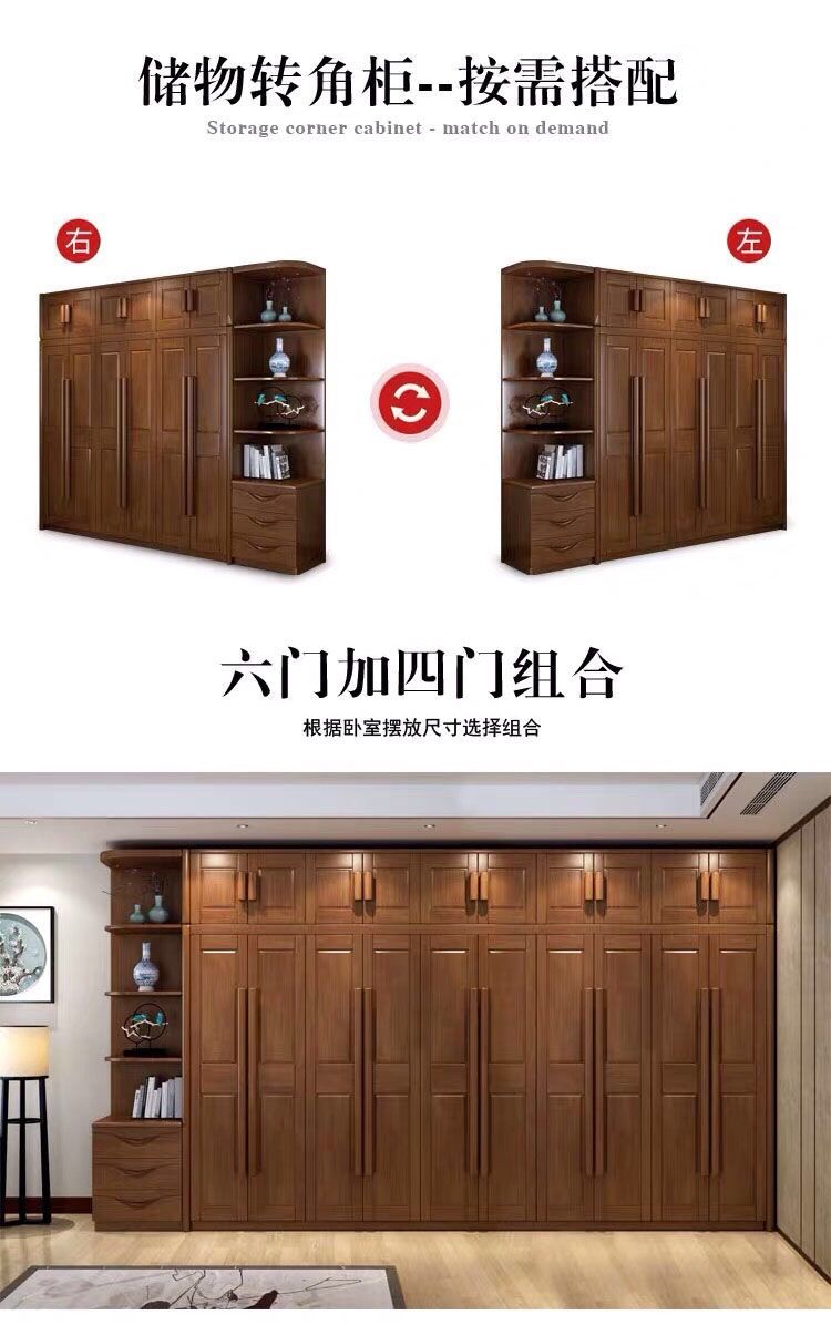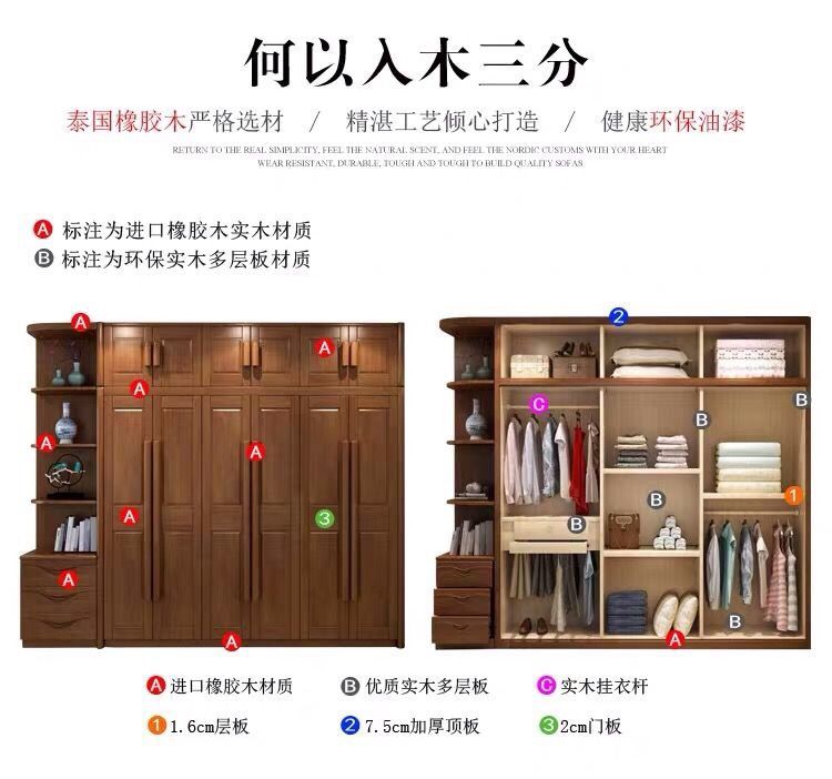 中式全实木衣柜简约现代3456组装橡胶木大衣橱经济型组装卧室